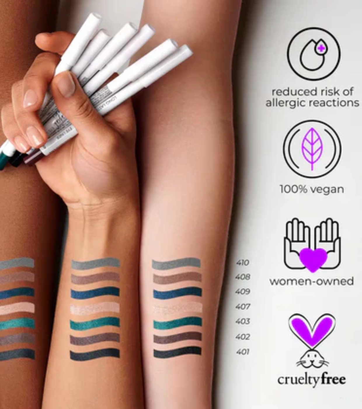 La formule longue tenue maintient le maquillage impeccable toute la journée, assurant un look intense et parfaitement défini.