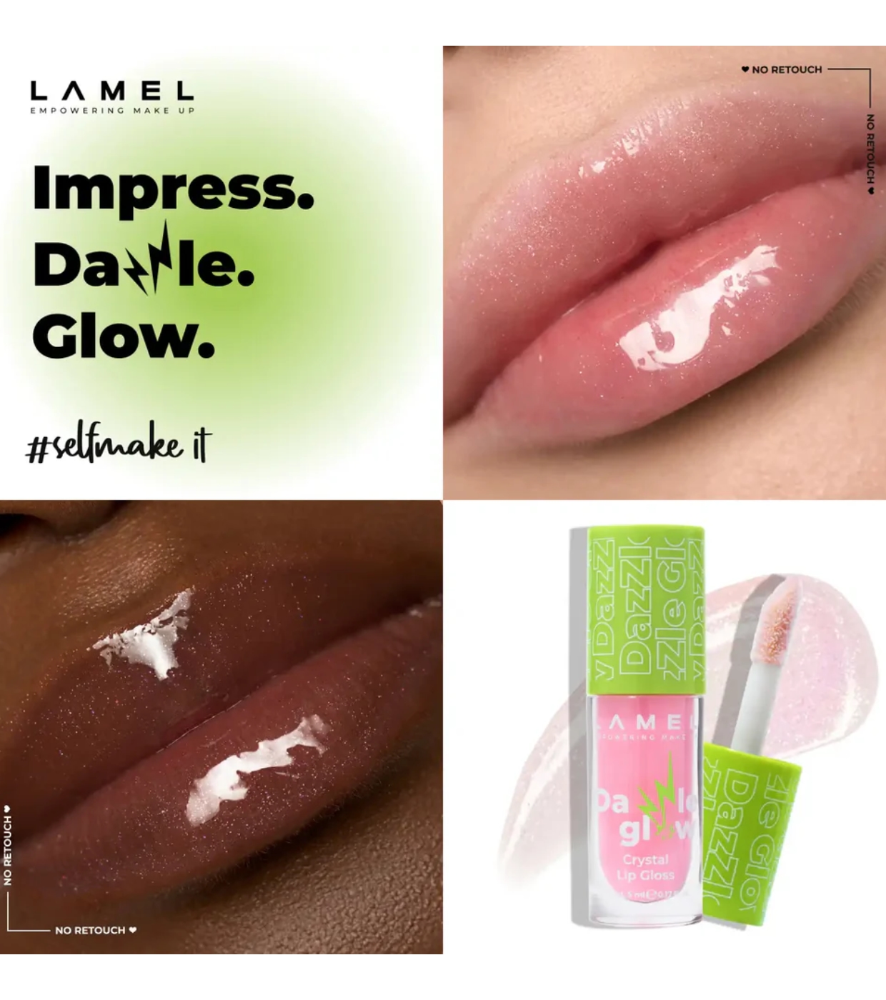 Préparez-vous pour des lèvres irrésistibles avec le Dazzle Glow Crystal Lip Gloss de Lamel , un brillant à lèvres qui rehausse instantanément n'importe quel look.