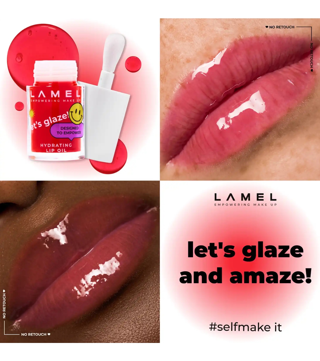Donnez à vos lèvres une touche irrésistible avec l'huile à lèvres Let’s Glaze Lamel , conçue pour offrir une hydratation profonde, une brillance éclatante et une couleur semi-transparente qui rehausse votre beauté naturelle.