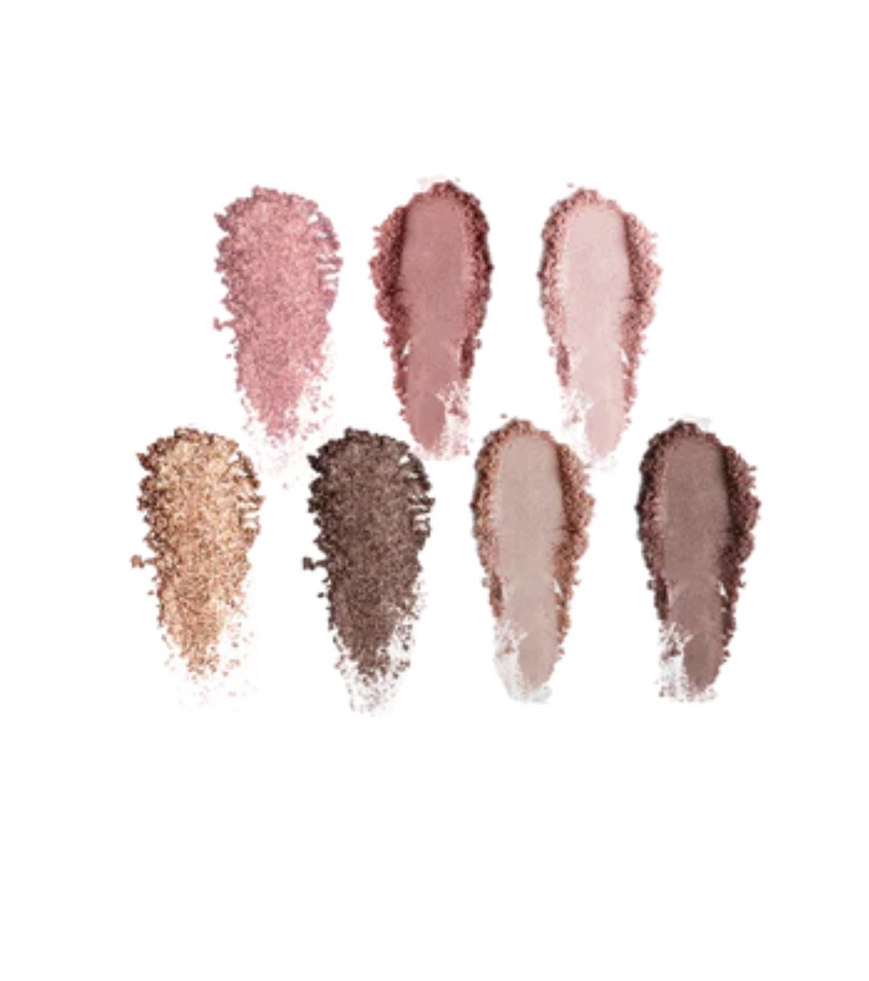 La palette combine des teintes mates, irisées et nacrées. Les teintes mates sont idéales pour une application sur toute la paupière mobile, les teintes irisées pour un effet central, et les teintes nacrées pour accentuer le regard.