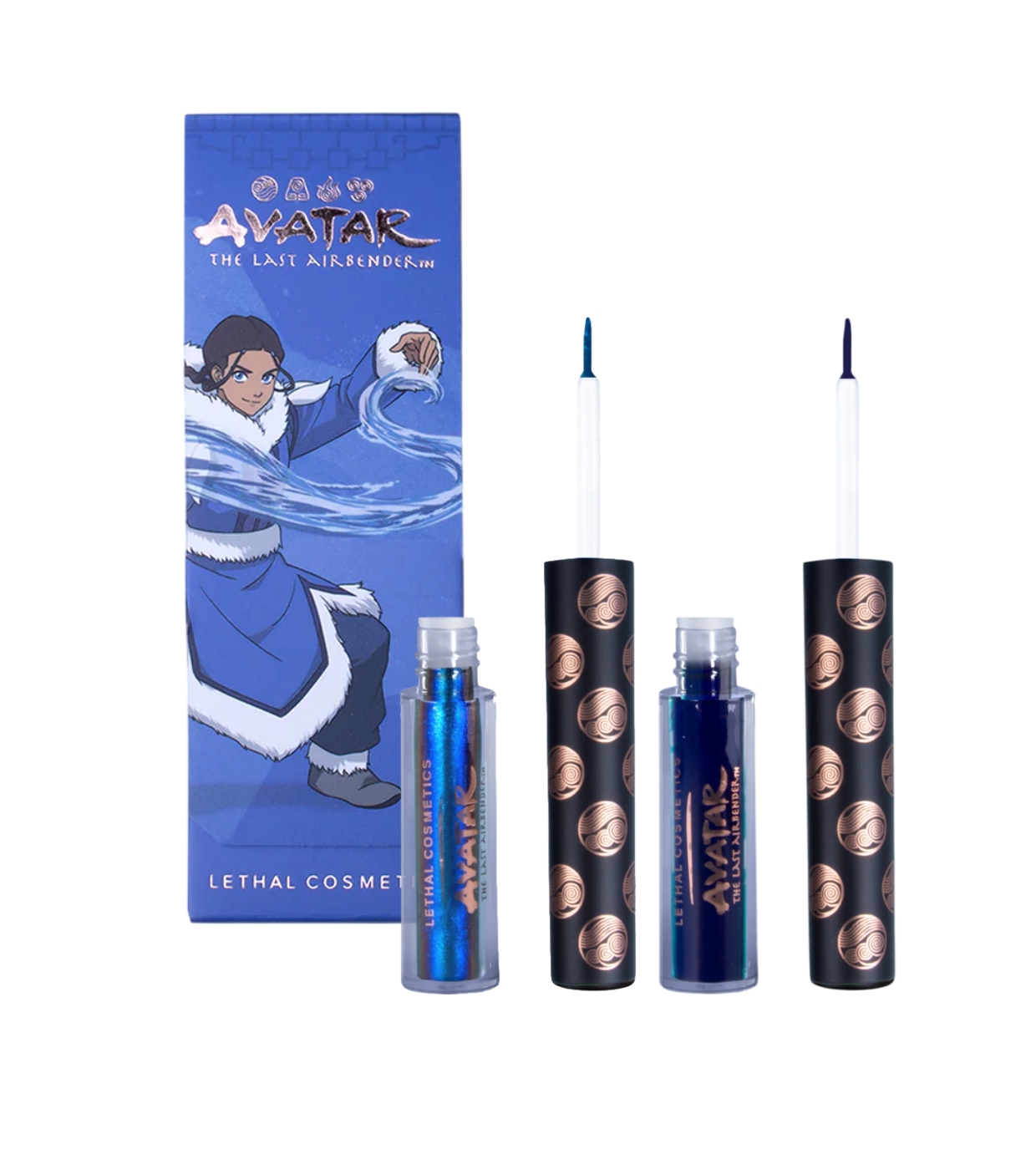 La personnalité de l'eau, capturée dans un élégant ensemble d'eyeliners de Lethal Cosmetics qui combine deux contrastes parfaits : un ton mat serein et un fini multichrome dynamique, inspiré par le flux, le calme et la force de l'élément eau.