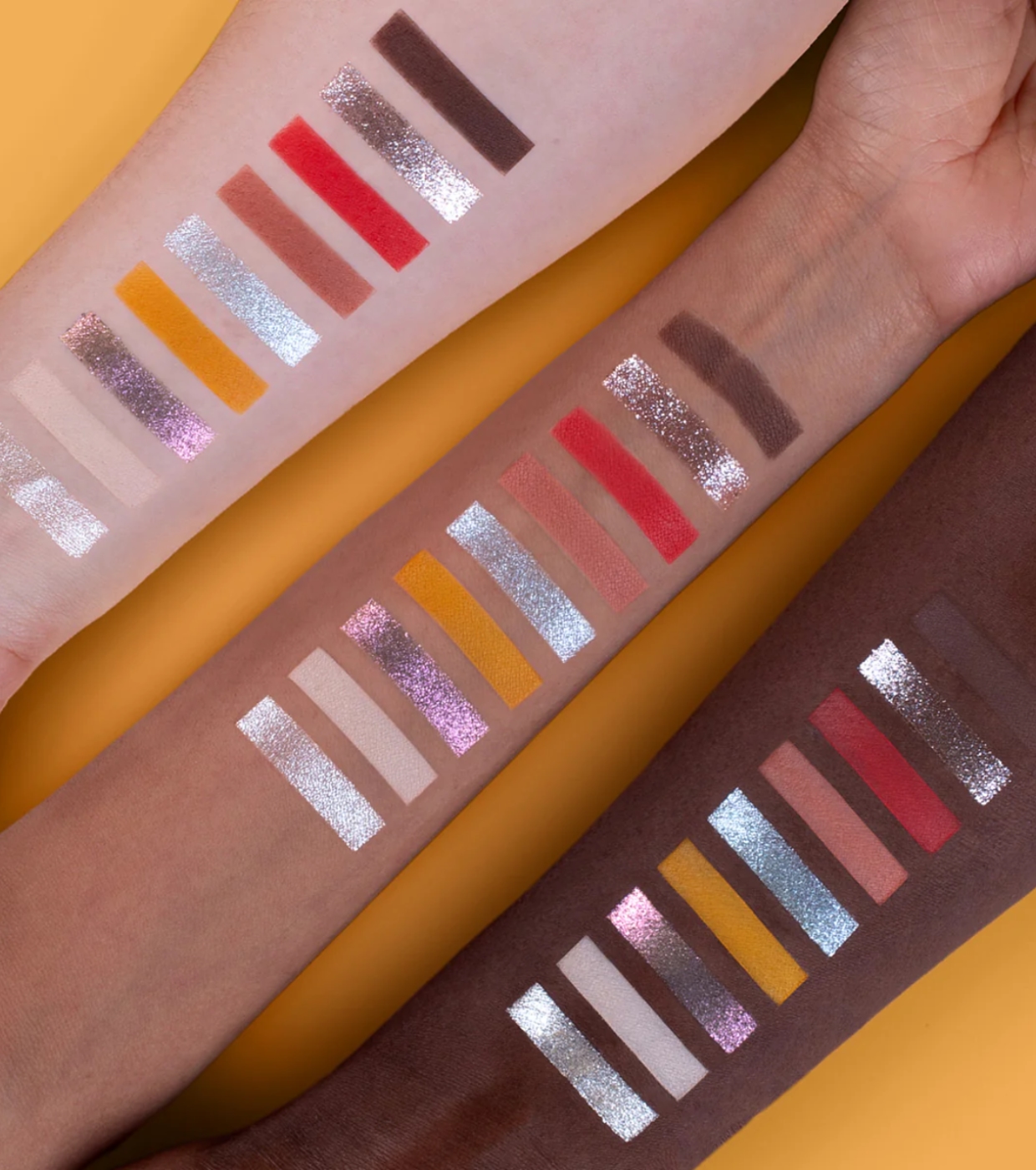 Une sélection équilibrée de fards mats hautement pigmentés, de métallisés à fort impact et d'une teinte duochrome spectaculaire, parfaite pour créer des looks éthérés et lumineux, pleins de mouvement.