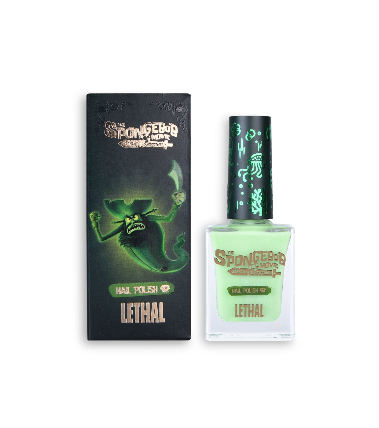 La collection de vernis à ongles SpongeBob Movie Nail Polish Collection vous transporte directement de Bikini Bottom sur vos ongles grâce à des finitions d'un autre monde, des paillettes fantomatiques et des effets océaniques inspirés par des pirates maudits, des mondes sous-marins hantés et des aventures inoubliables en haute mer.