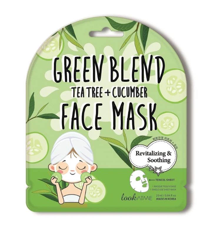 Masque facial calmant et revitalisant à l'extrait d'arbre à thé et de concombre.