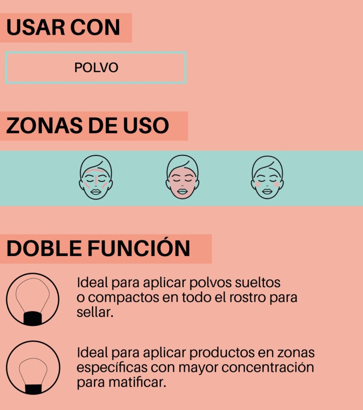 - Petit conseil : appliquez le produit avec plus de précision pour matifier des zones spécifiques. Appliquez le blush poudre, crème ou liquide avec contrôle et précision.
