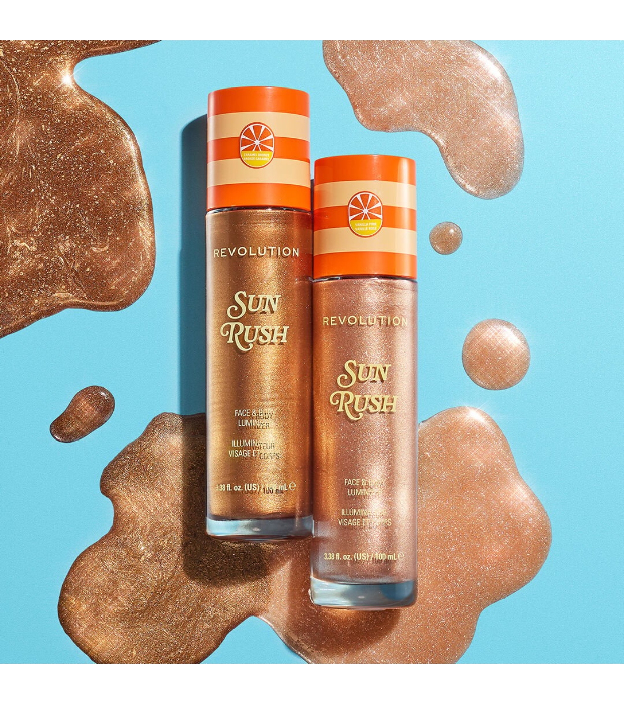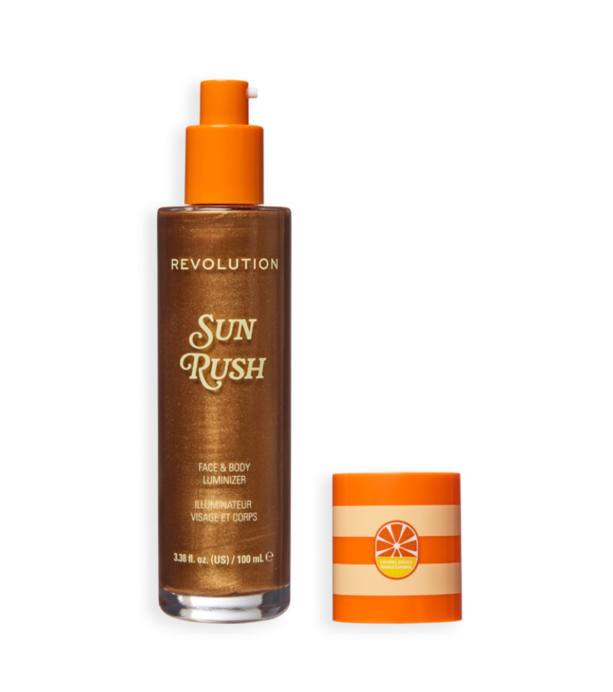 Obtenez un éclat juteux et radieux de la tête aux pieds avec l' illuminateur corporel Sun Rush de Revolution qui se fond parfaitement dans la peau.