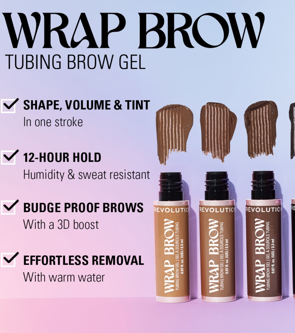 Définissez, fixez et colorez vos sourcils en une seule étape avec le gel à sourcils Wrap Brow de Revolution , un gel innovant doté d'une technologie de tubage qui enveloppe chaque poil pour créer un effet 3D plus dense, plus défini et plus naturel.