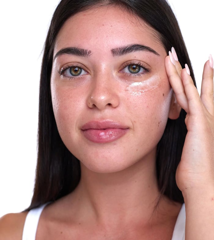 Avec votre peau parfaitement propre, je vous recommande d'appliquer une petite quantité, de la taille d'un grain de riz (deux points si vos cernes sont très secs, un point si vos cernes ne sont pas si déshydratés) sur le contour des yeux et de masser doucement sans exercer de pression.