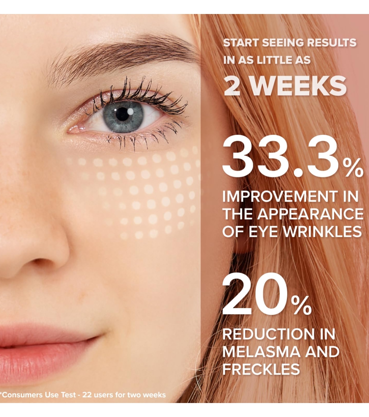 Ces deux puissants actifs antioxydants réduisent la production de mélanine, combattent les radicaux libres et éclaircissent efficacement les cernes et l'hyperpigmentation.