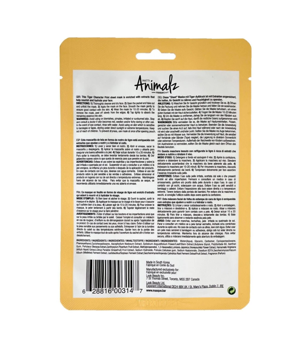 Ajoutez une touche sauvage et amusante à votre routine de soins de la peau avec le masque visage Pretty Animalz Tiger de masque BAR .