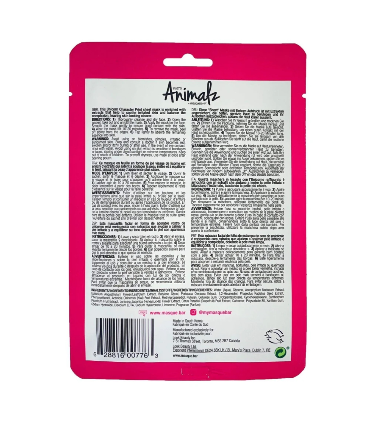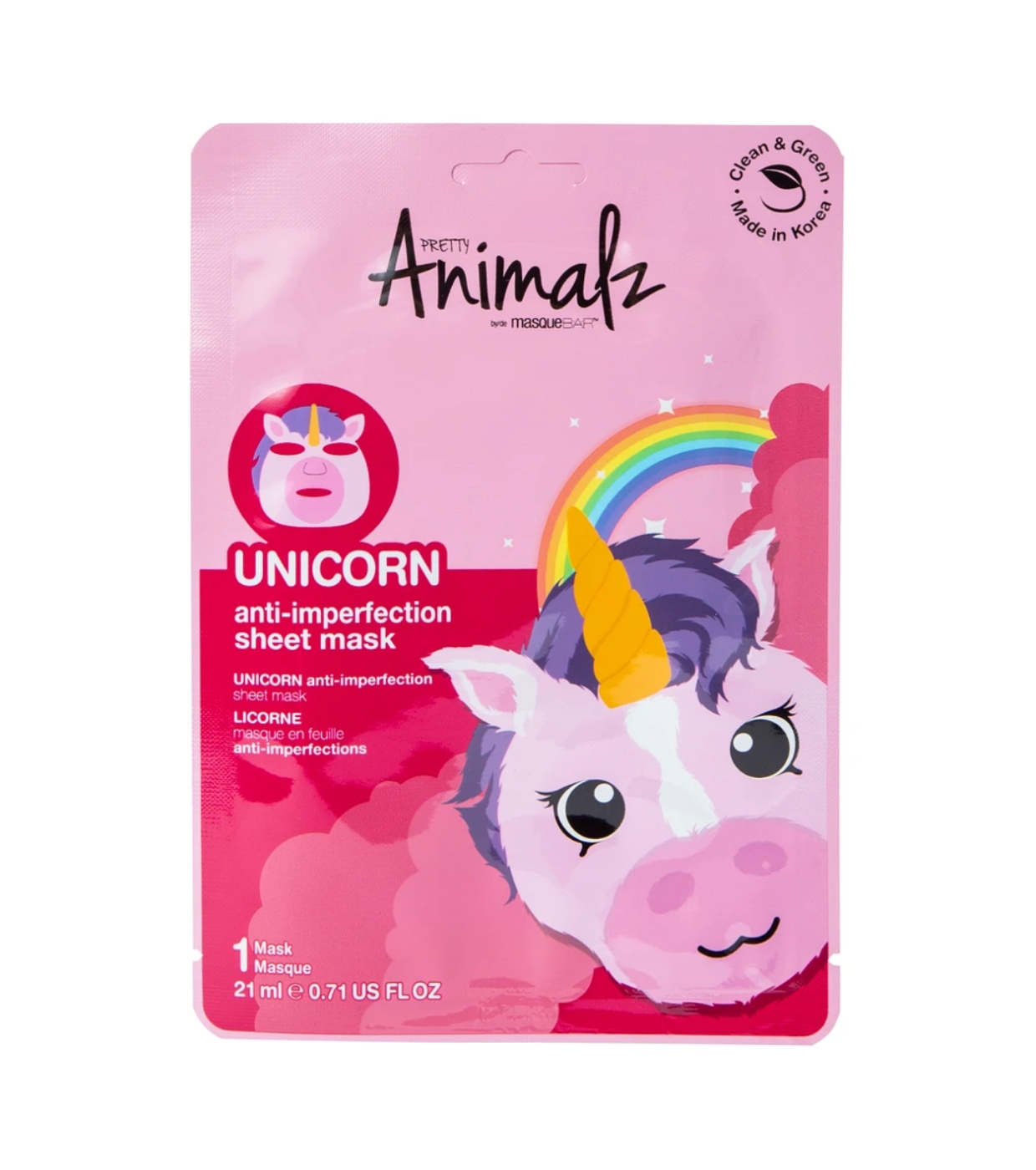Transformez votre routine de soins du visage en une expérience magique avec le masque facial Pretty Animalz Unicornio de masque BAR , conçu pour lutter contre les imperfections et apporter de la luminosité.