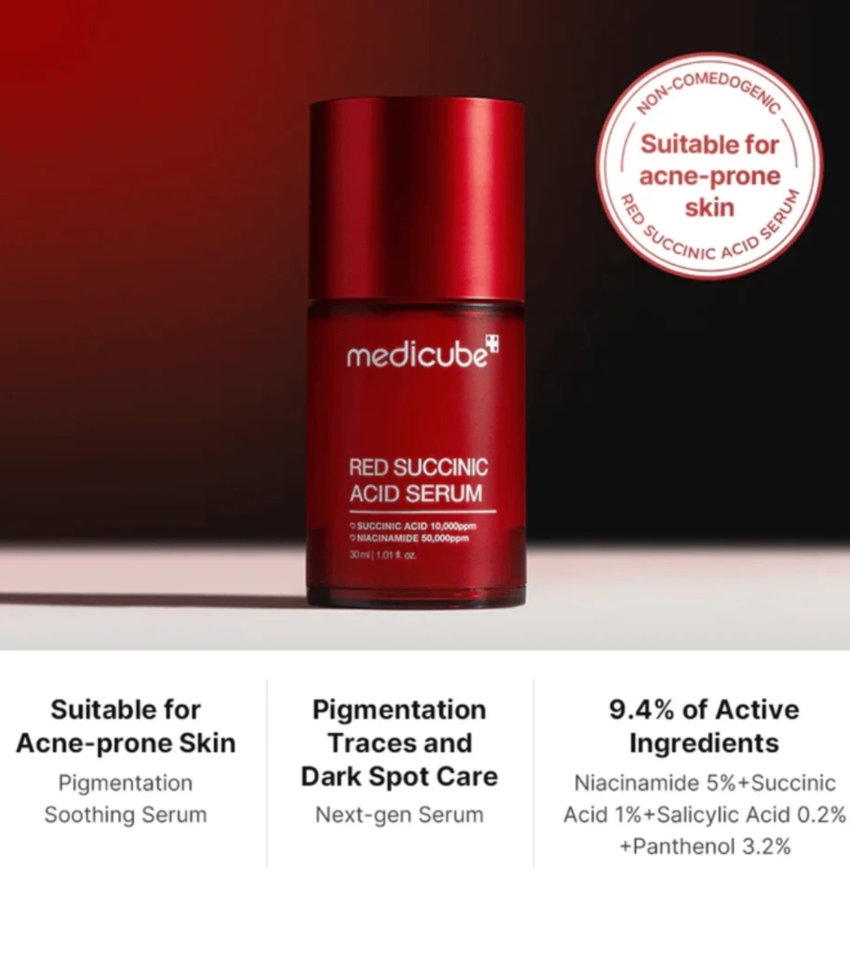 Clarifiez et équilibrez votre peau avec Medicube Red Succinic Acid Clarifying Serum , un sérum exfoliant non comédogène et hypoallergénique spécialement formulé pour les peaux à tendance acnéique, sensibles ou déséquilibrées.