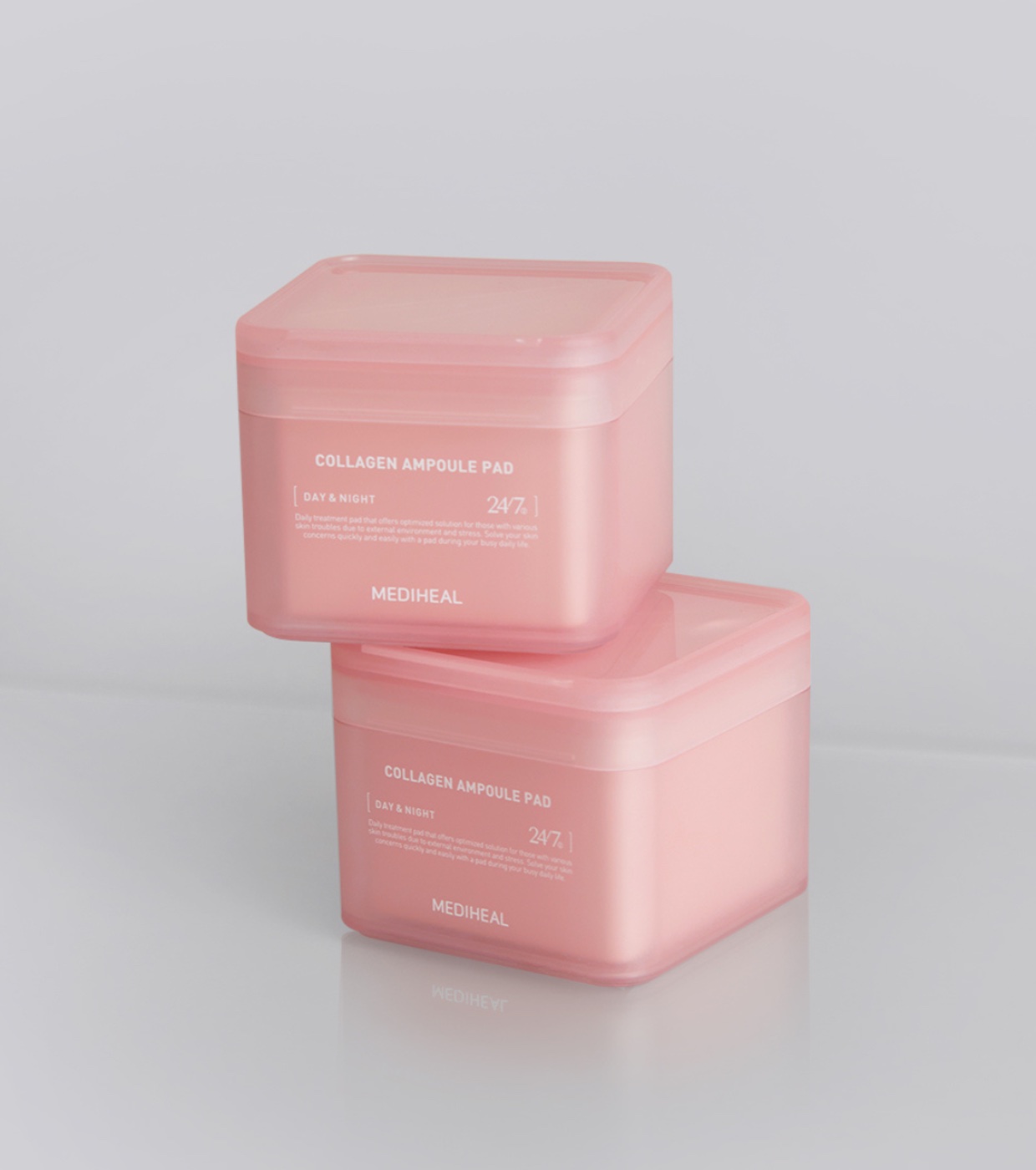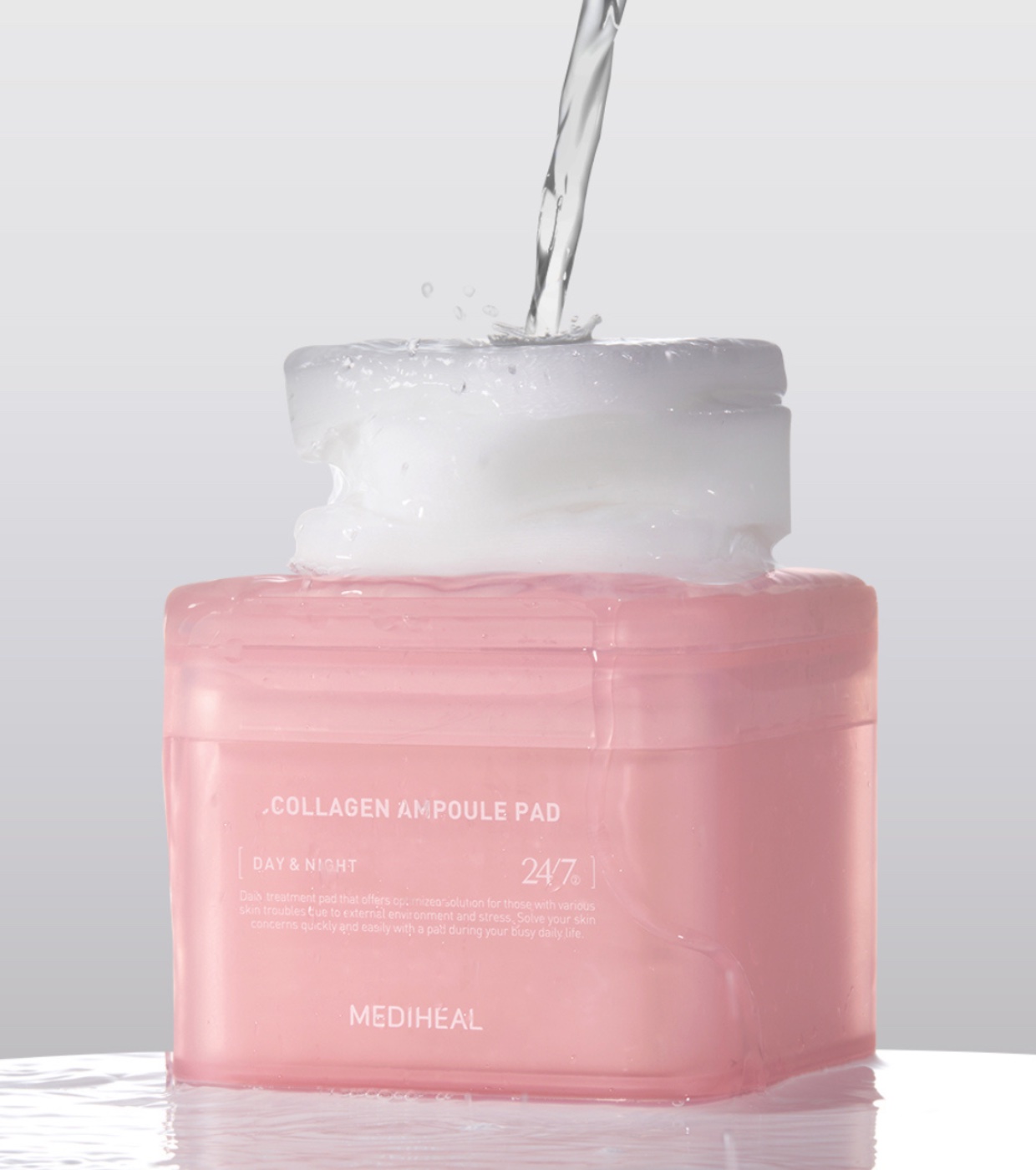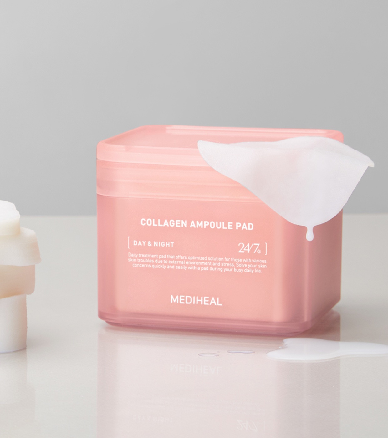 Transformez votre routine de soins de la peau avec le tonique facial au collagène 'pads' au format Mediheal , conçu pour nourrir, raffermir et rajeunir la peau affaissée et vieillissante.