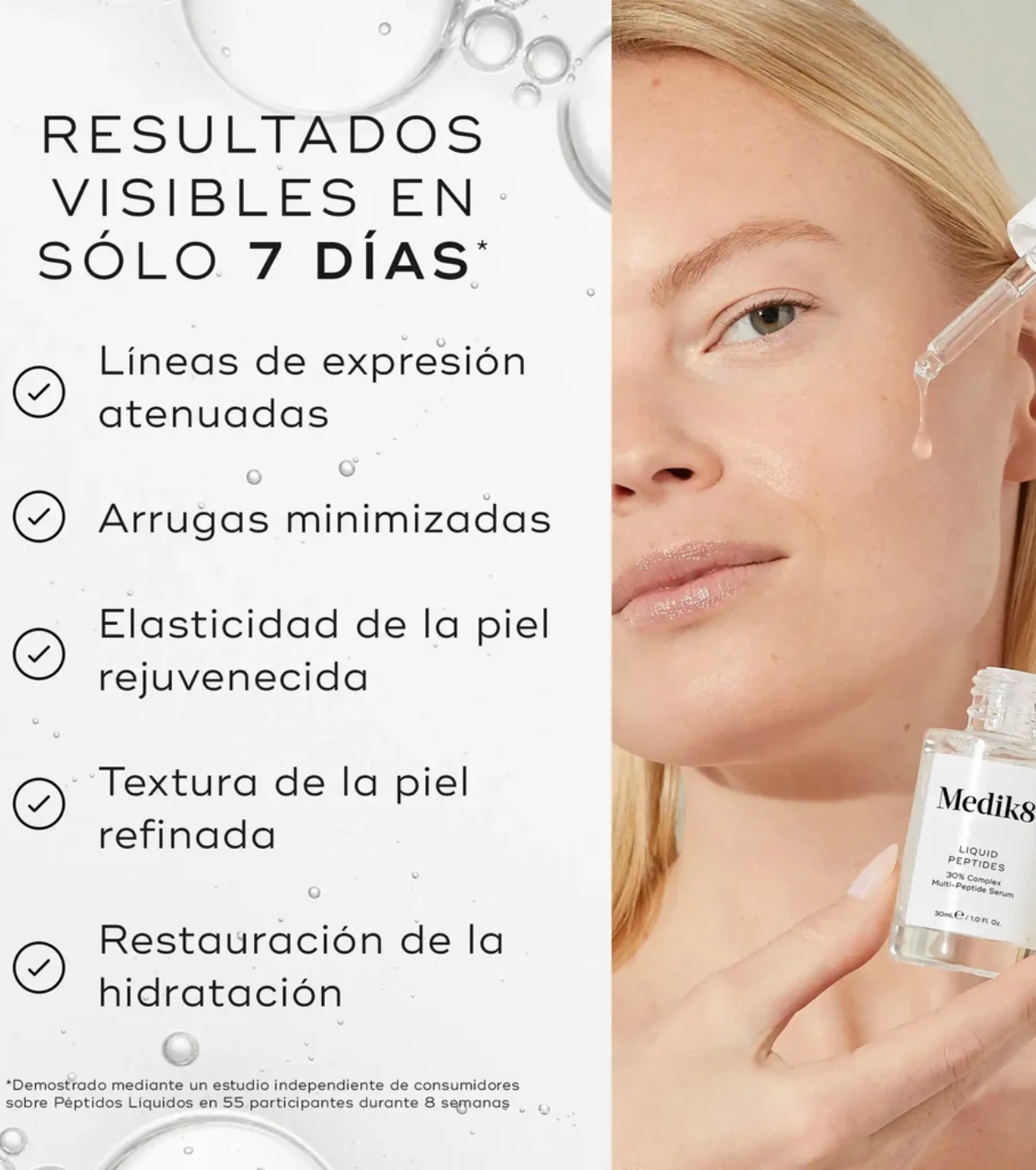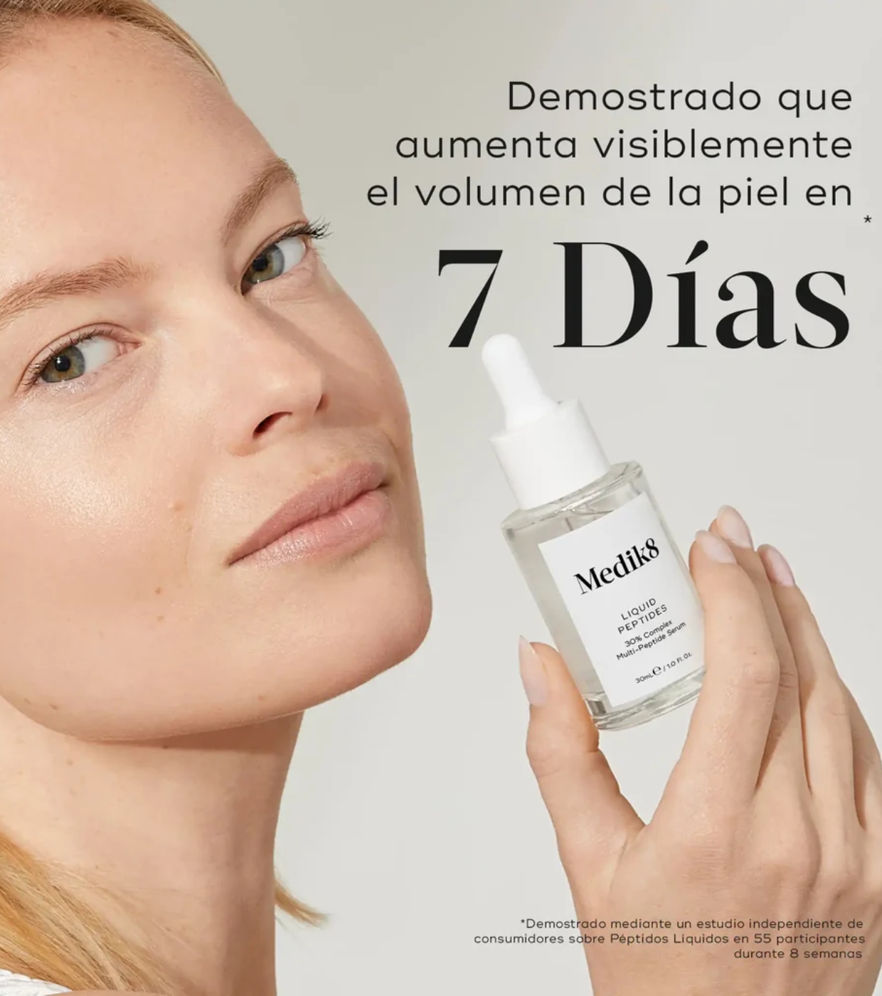 Renouvelez et ravivez votre peau avec le sérum multi-peptide complexe 30% Liquid Peptides de Medik8 .