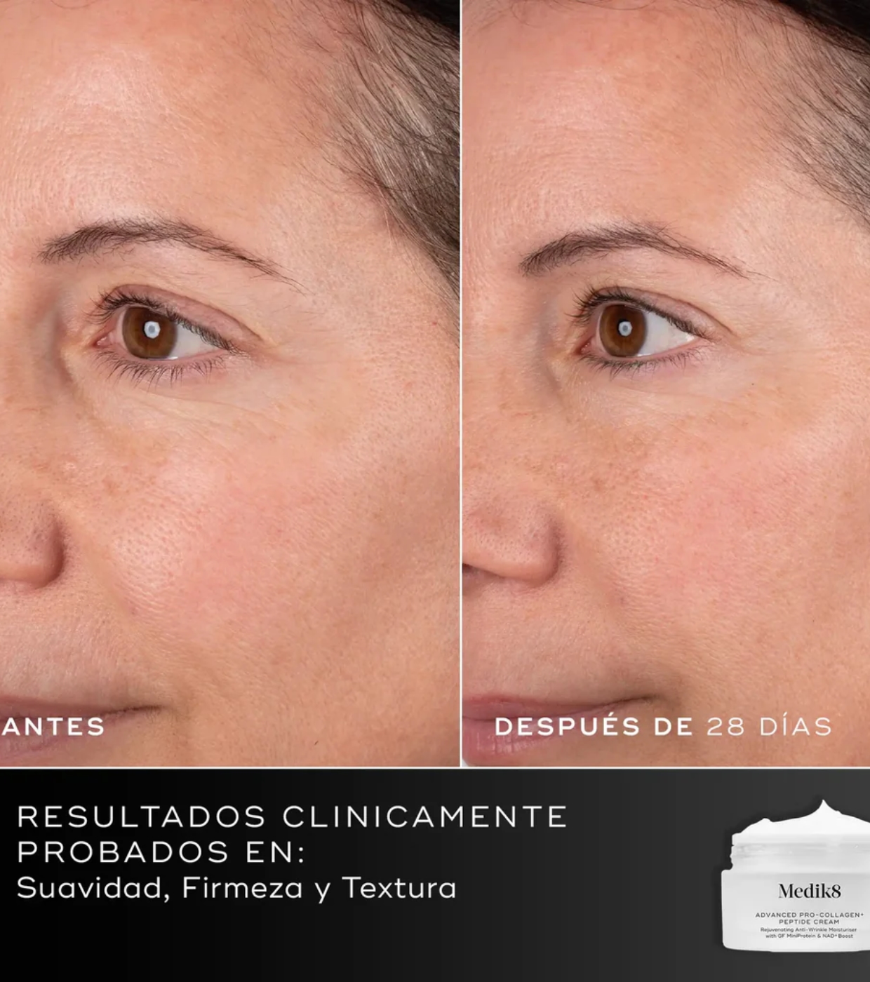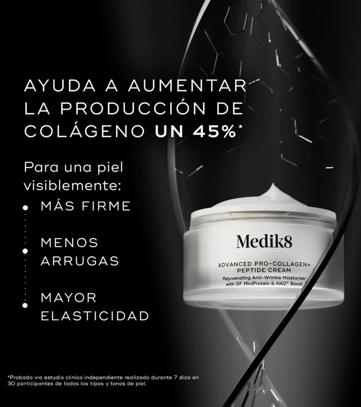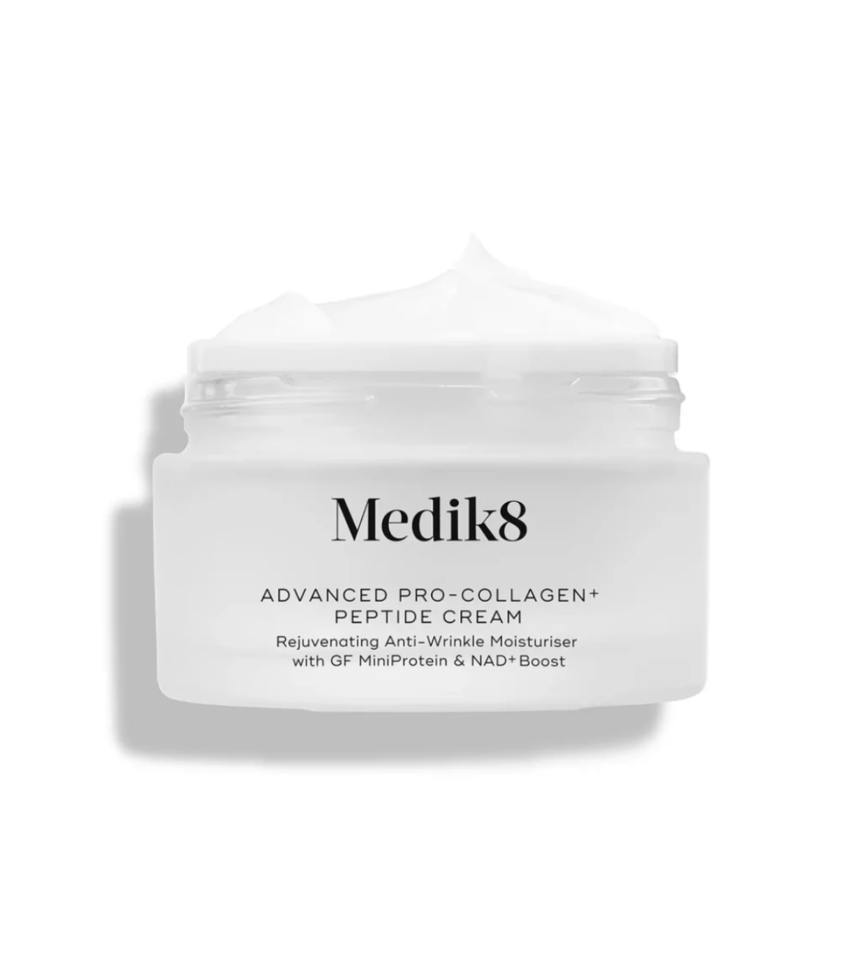Advanced Pro-Collagen+ Peptide Cream de Medik8 est la crème anti-âge haute performance qui stimule la production de collagène jusqu'à 45 %1 et favorise une longévité optimale de la peau.