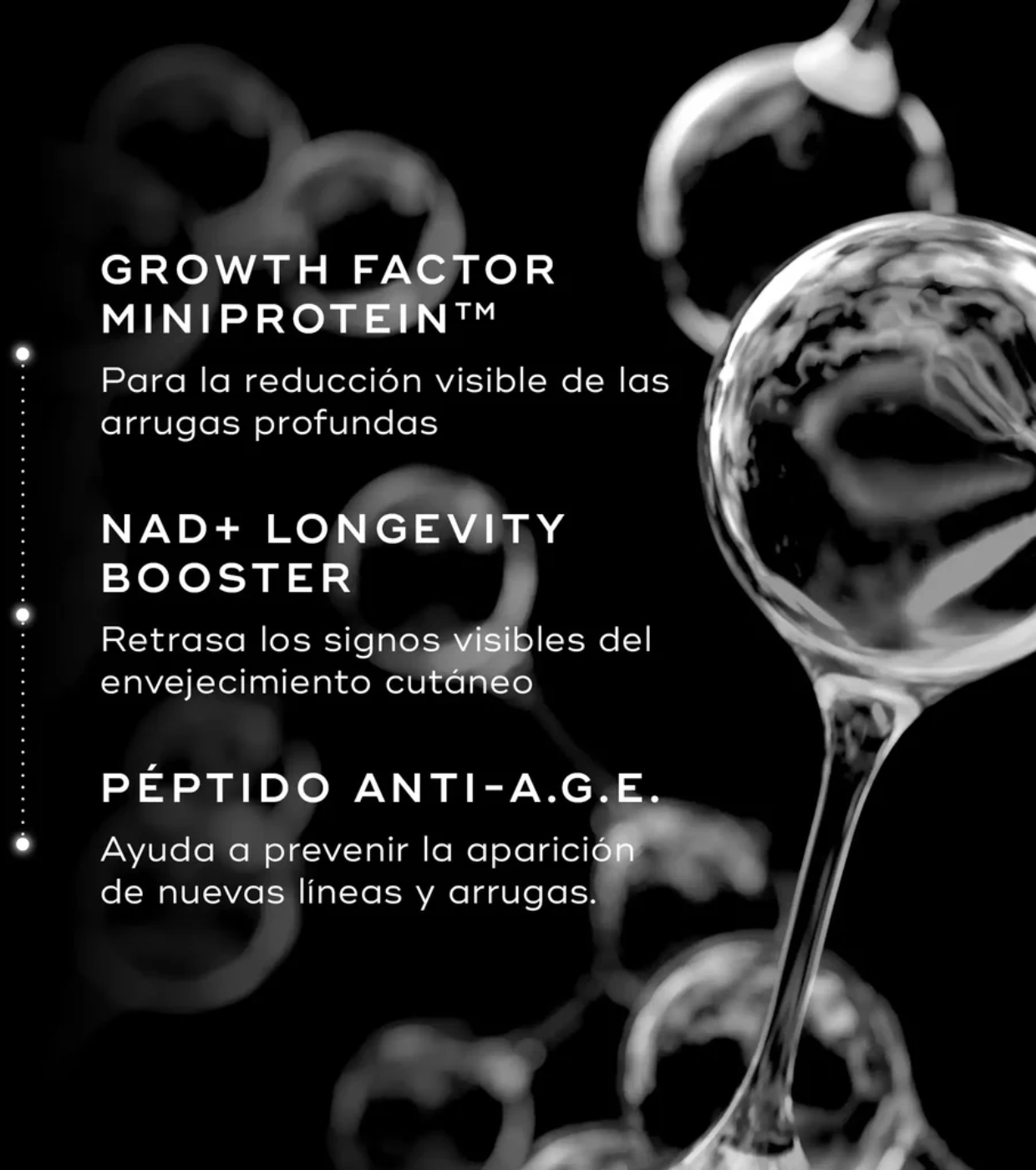 S'appuyant sur la science régénérative, ce soin combine des actifs de nouvelle génération tels que le Growth Factor MiniProtein™, le NAD+, booster de longévité, et le peptide anti-âge, qui agissent en synergie pour restaurer la structure de la peau et obtenir une peau plus lisse, sculptée et visiblement plus jeune.