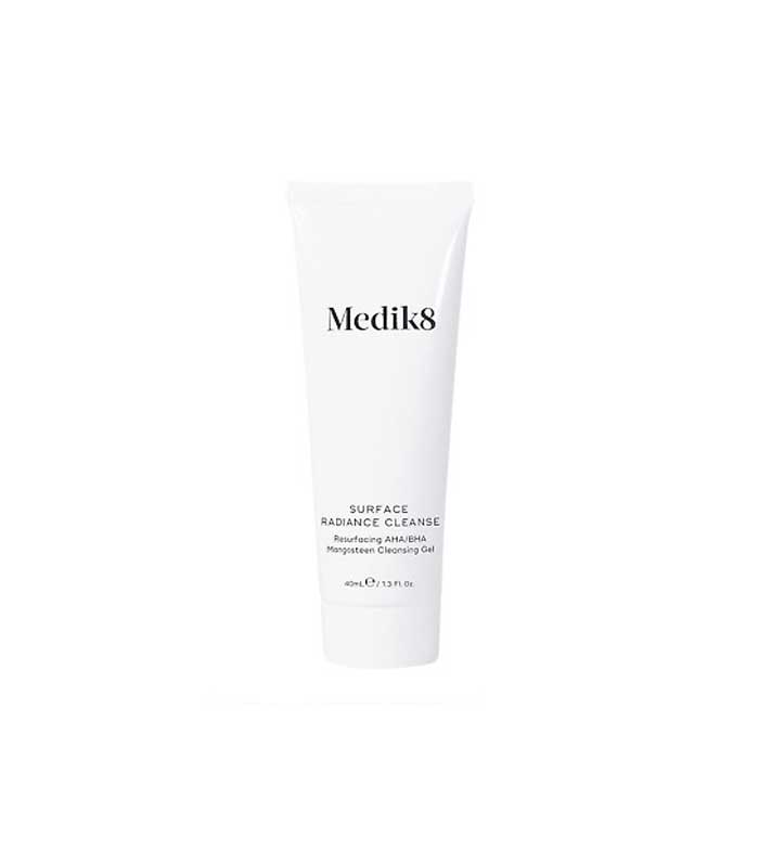Le Gel Nettoyant Visage au Mangoustan AHA/BHA Surface Radiance de Medik8 renouvelle et purifie la peau en douceur pour révéler un visage lisse et radieux.