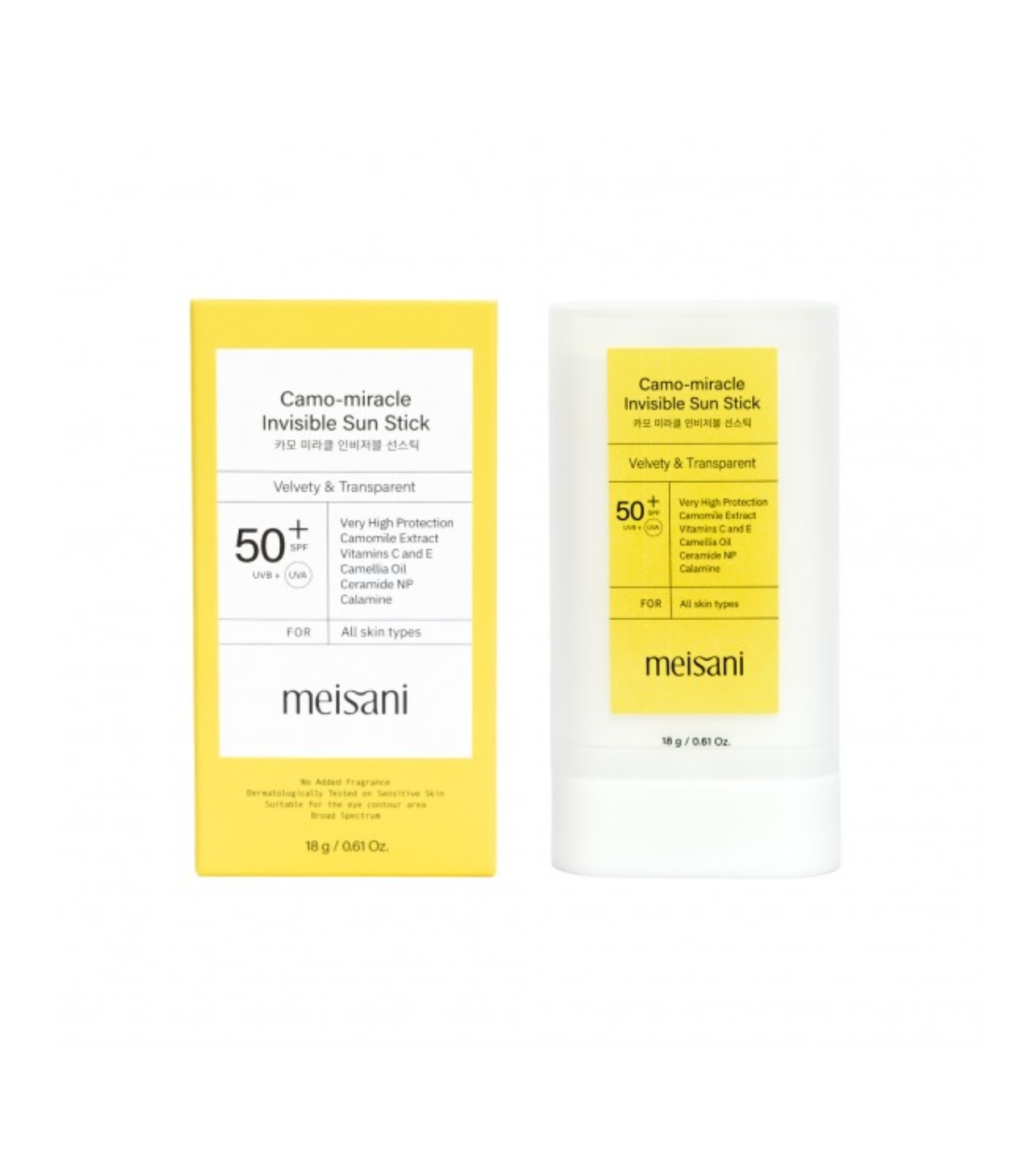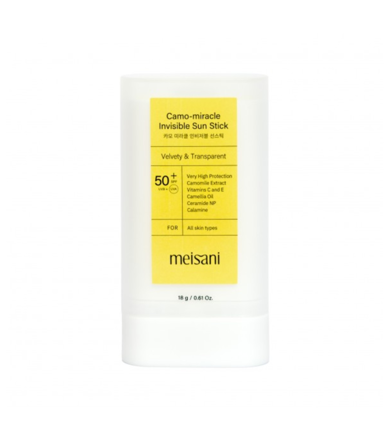 Le bâton solaire invisible Camo-Miracle SPF 50 de Meisani est idéal pour réappliquer une protection à tout moment et en tout lieu.
