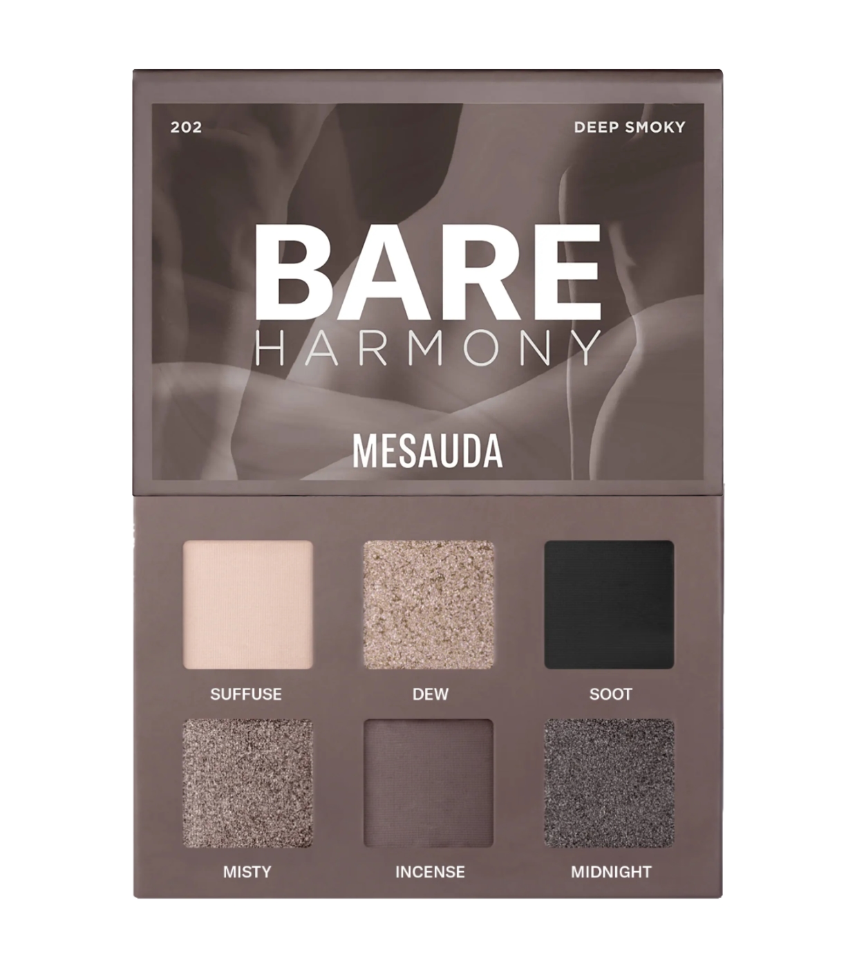 La palette de fards à paupières Bare Harmony 2.0 de Mesauda présente une gamme élégante de gris, du blanc au noir, incorporant des reflets uniques pour sublimer le regard.
