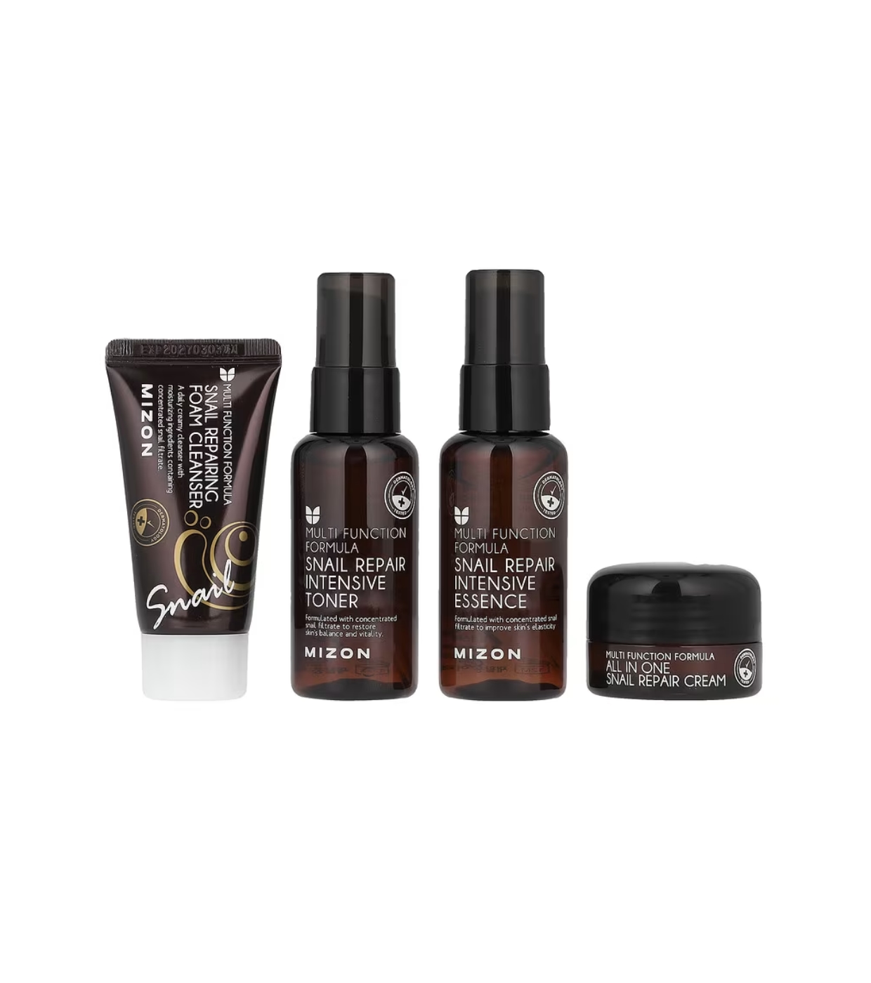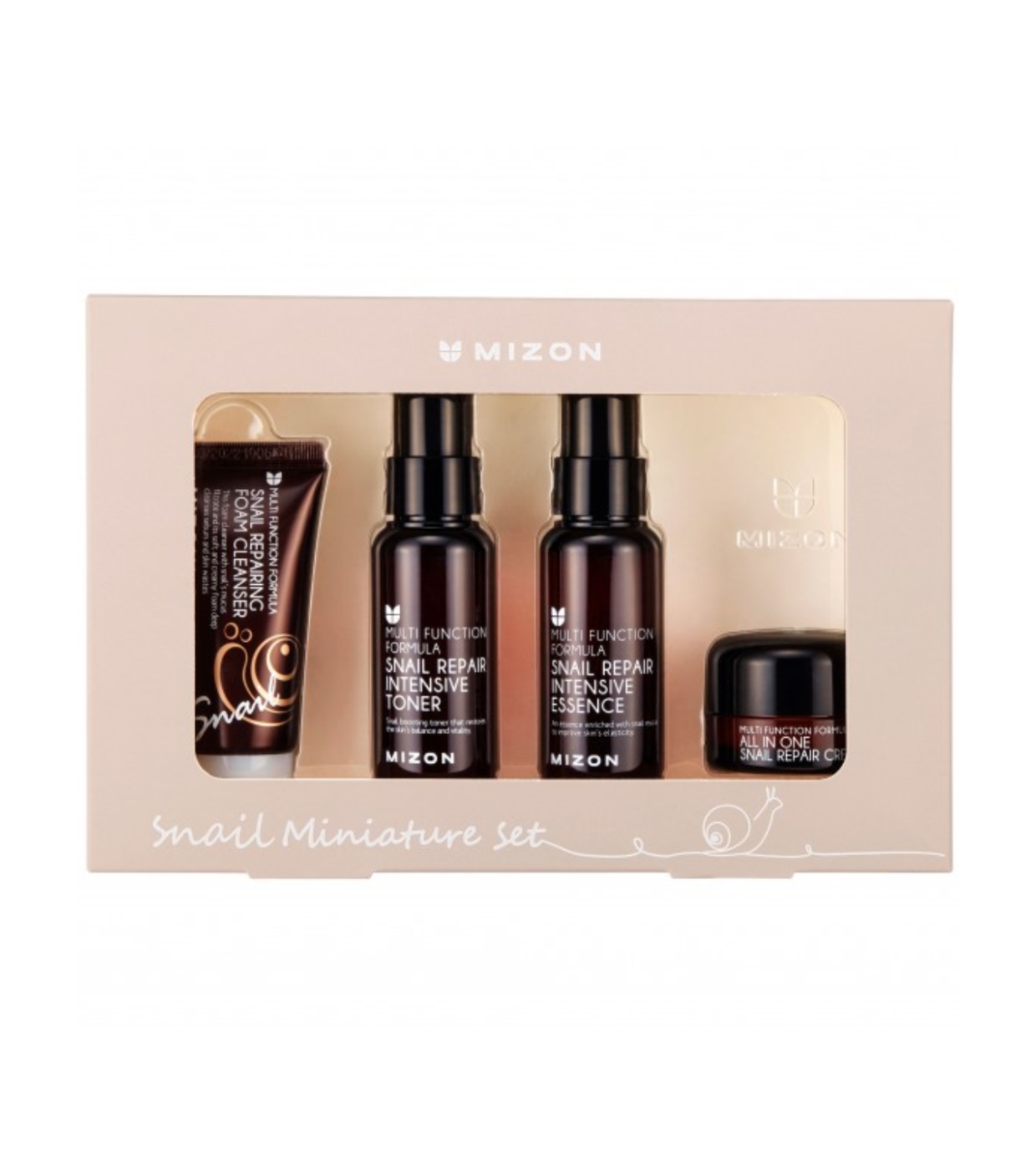 Découvrez le meilleur de Mizon avec le Snail Miniature Set , un kit format mini qui rassemble les produits les plus emblématiques de la gamme escargot, idéal pour essayer la routine complète ou emporter en voyage.