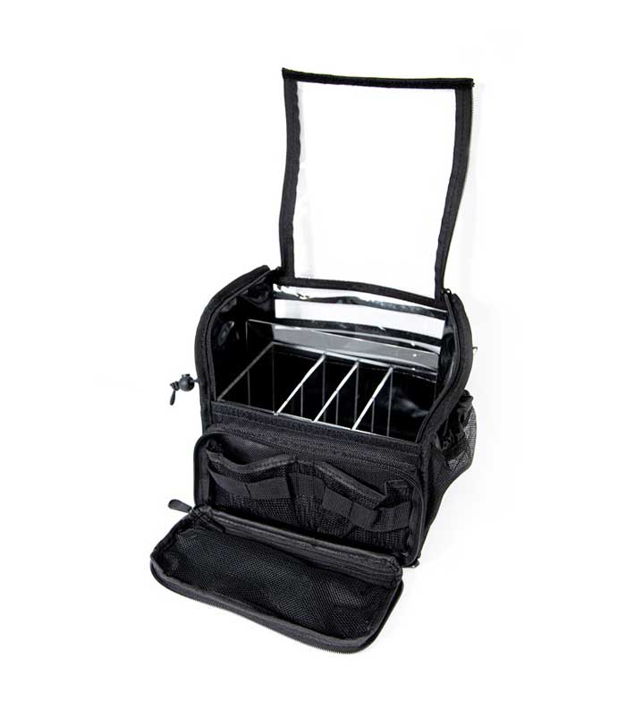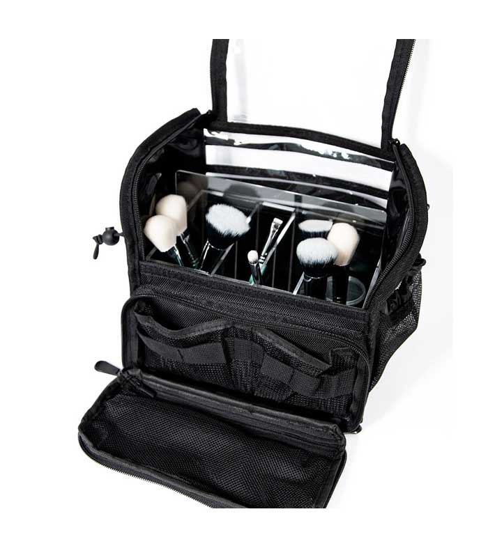 Il comprend une poche pratique dans laquelle vous pouvez transporter d'autres types d'ustensiles tels que des éponges de maquillage. Il possède également deux poches latérales qui s'adaptent au caoutchouc, ce qui vous permet de stocker de plus petits produits.