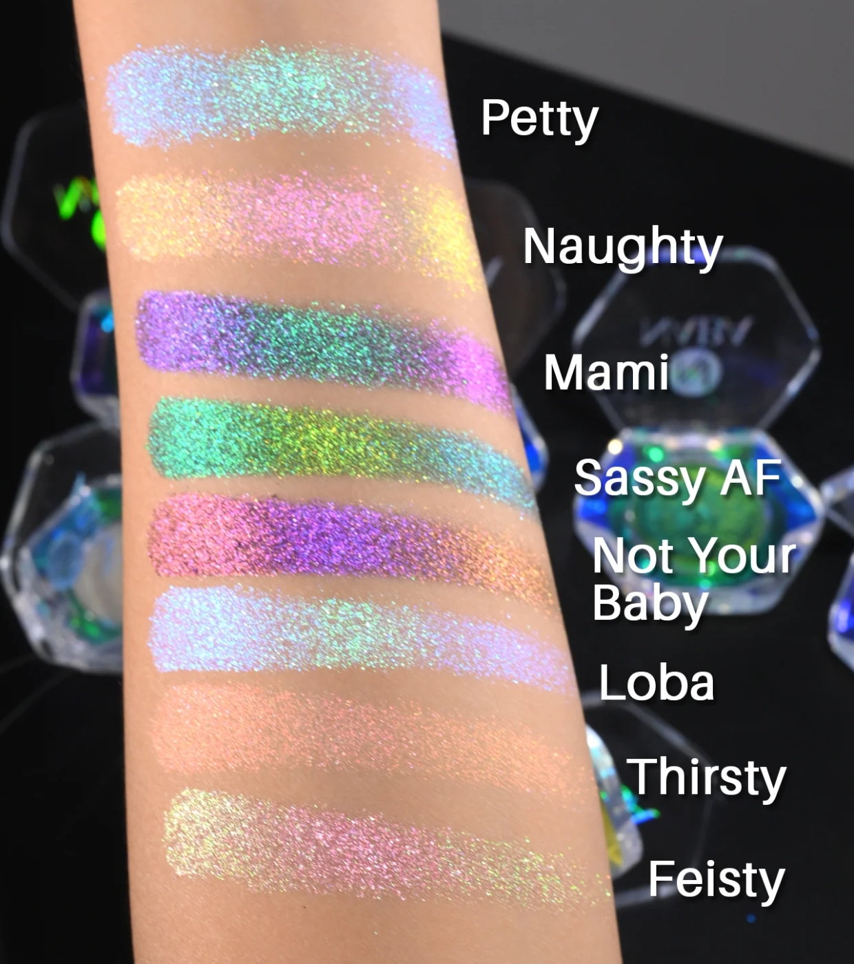 Chaque pigment contient des microparticules nacrées recouvertes d'oxydes métalliques, créant un effet intense et changeant que les ombres conventionnelles ne peuvent égaler.