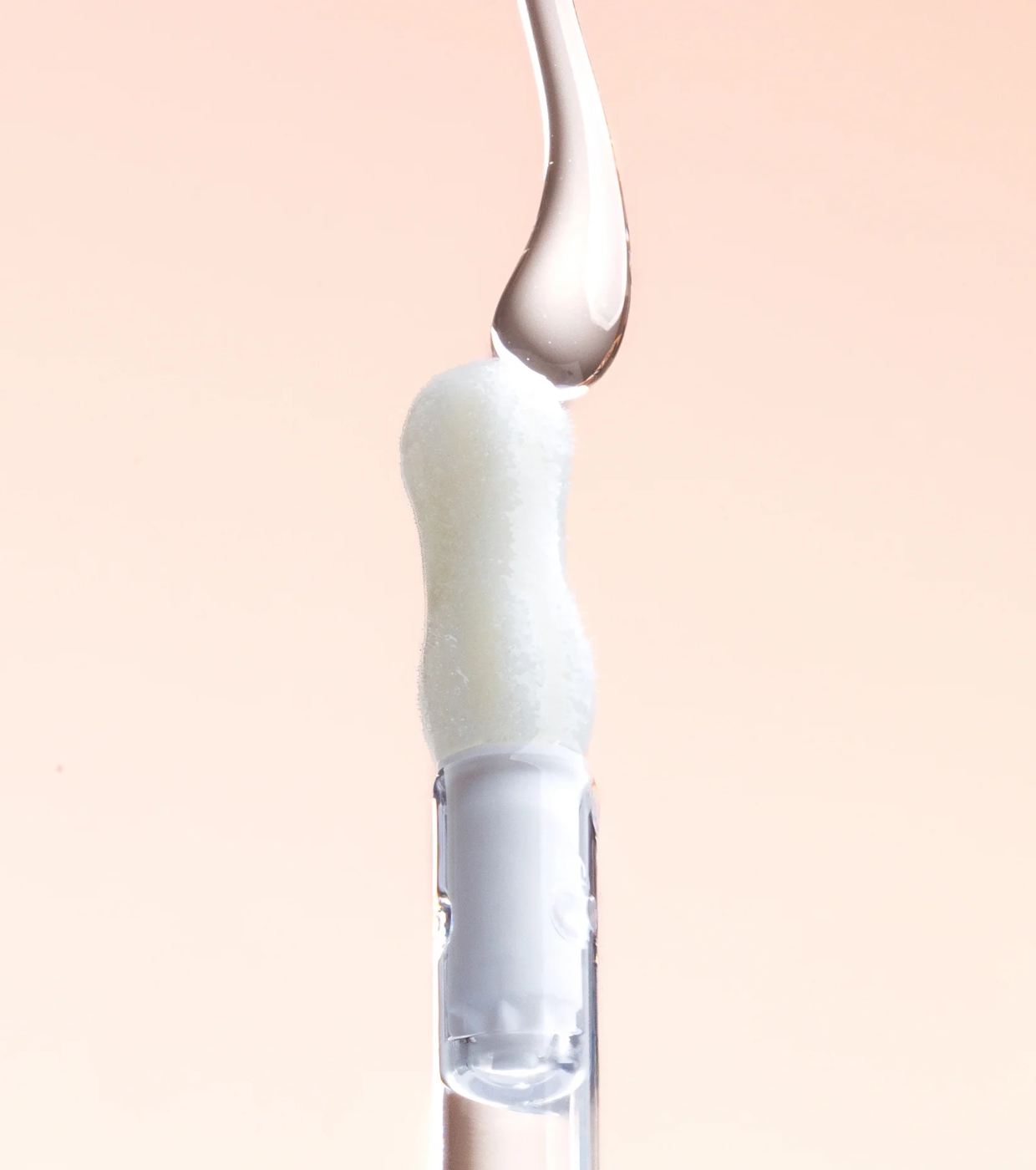 L'applicateur en forme de sablier masse tout en libérant l'huile pour les lèvres.