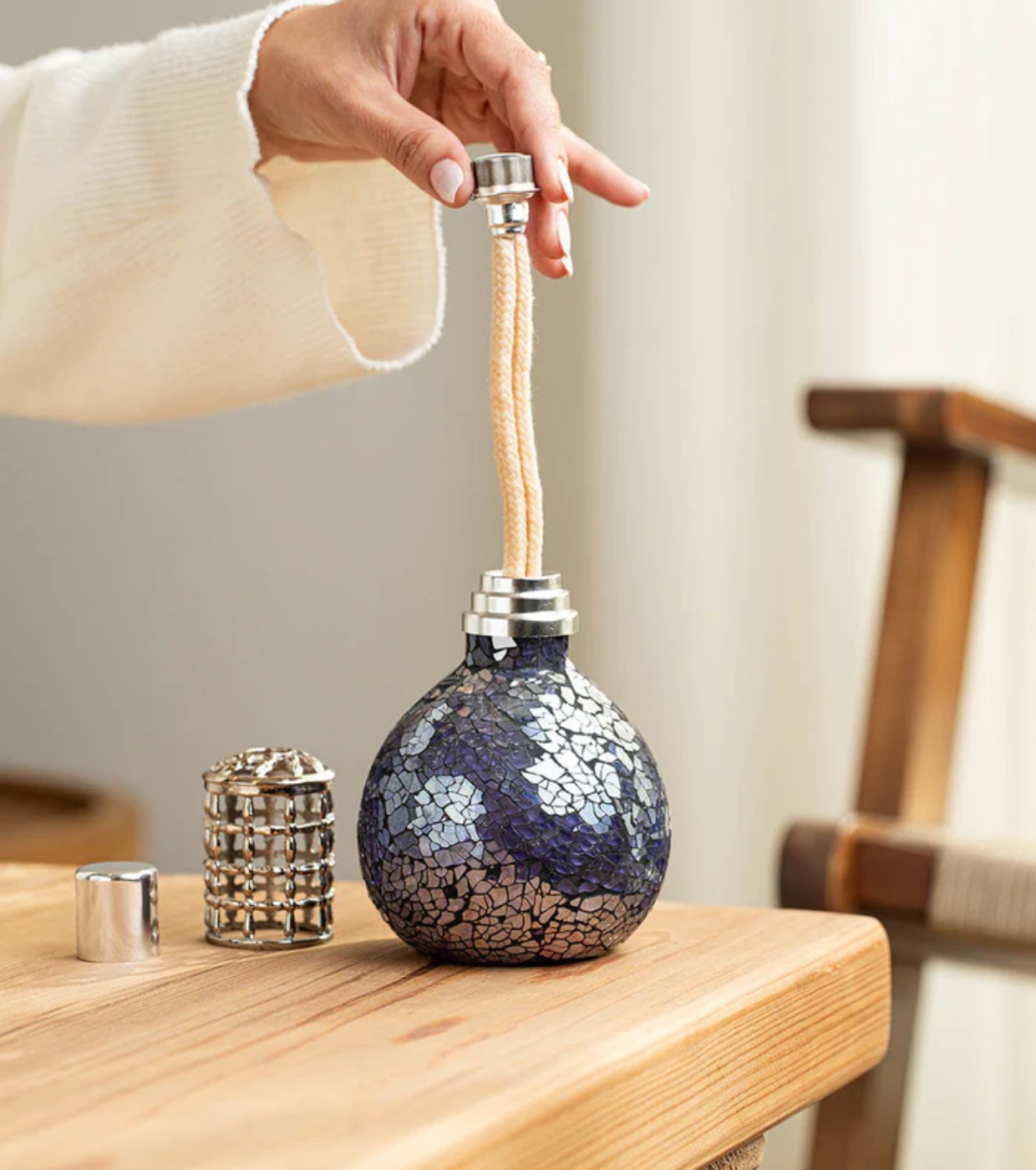 Remplissez votre maison de calme et de sérénité avec Moonlight, une lampe catalytique lilas de Natta Beauty .