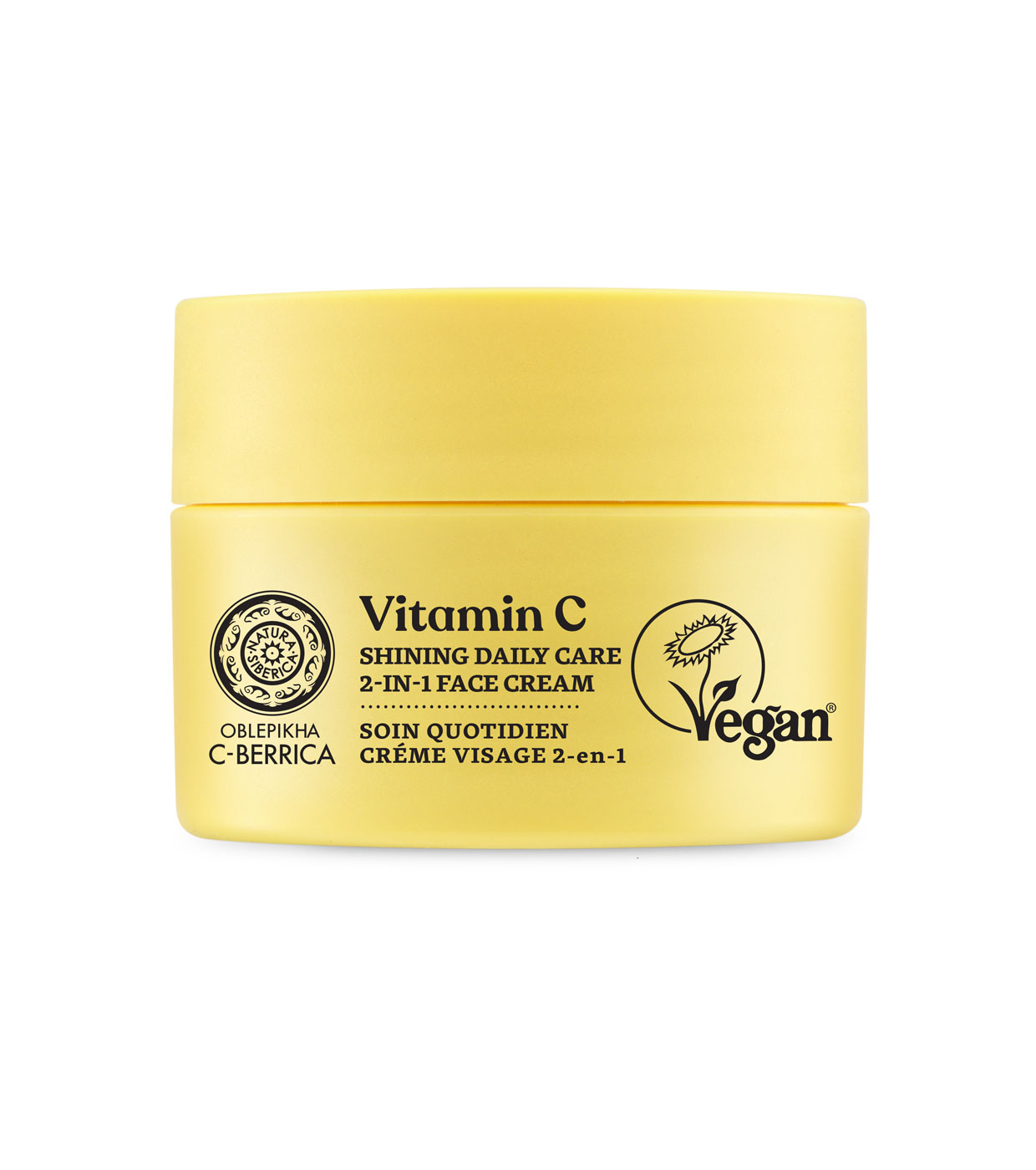 Profitez du meilleur effet d’hydratation et d’éclat sur votre peau ! La crème visage innovante 2 en 1 combine les propriétés nourrissantes de l'oblepikha et les effets éclaircissants de la vitamine C pour laisser un teint jeune et éclatant.