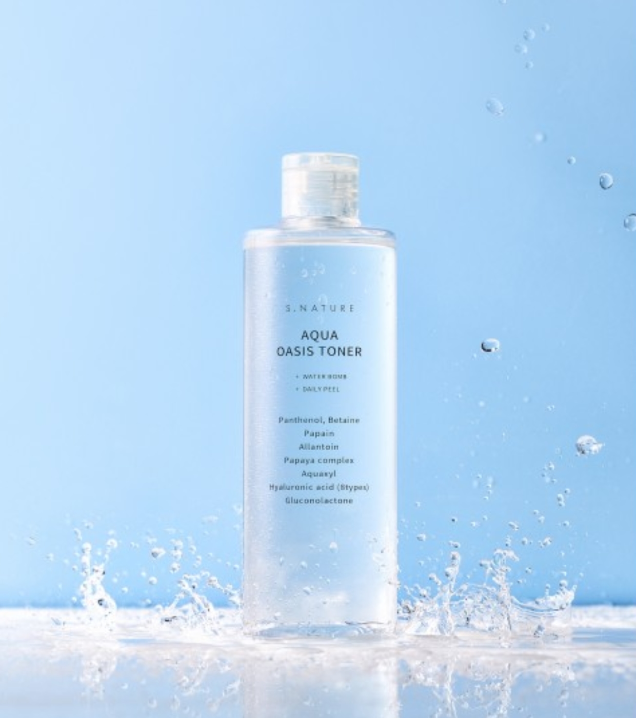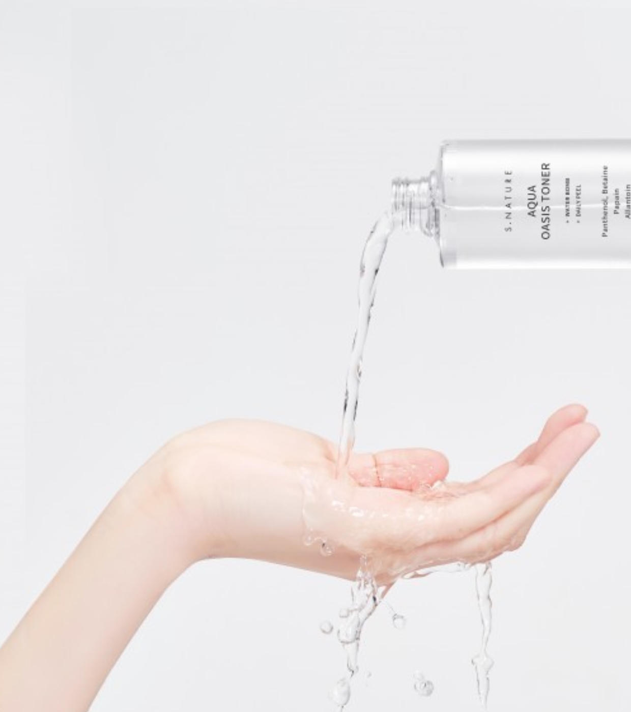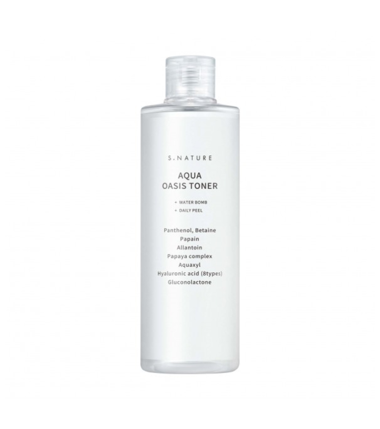 Aqua Oasis Toner de S.NATURE est une lotion tonique hydratante et apaisante pour le visage, formulée pour adoucir, équilibrer et préparer la peau avant le reste de la routine de soins.