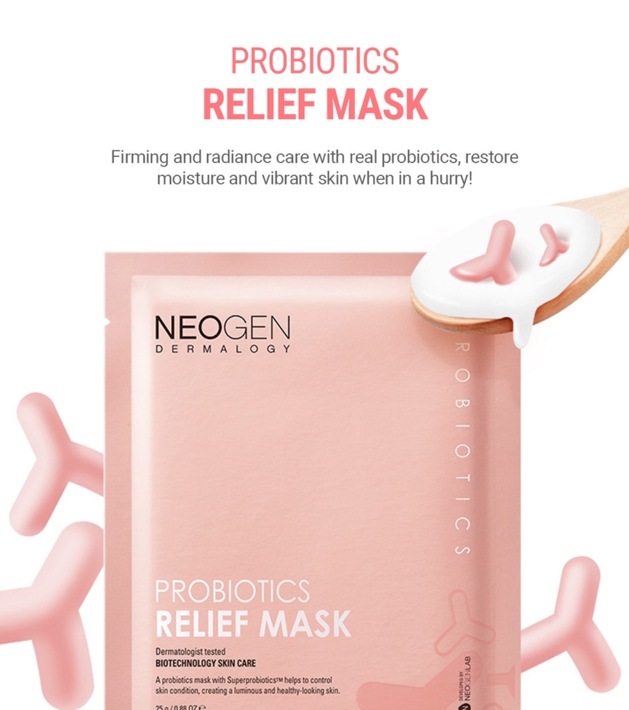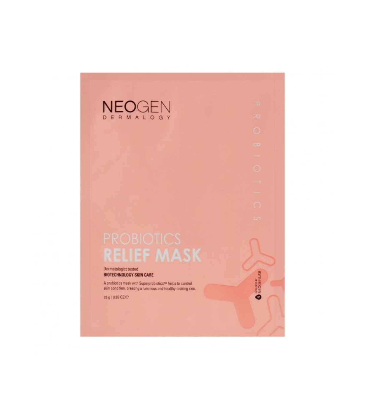 Le Dermalogy Probiotics Relief Mask de Neogen est un masque visage apaisant et intensif spécialement conçu pour les peaux sèches, sensibles ou dont la barrière cutanée est affaiblie.