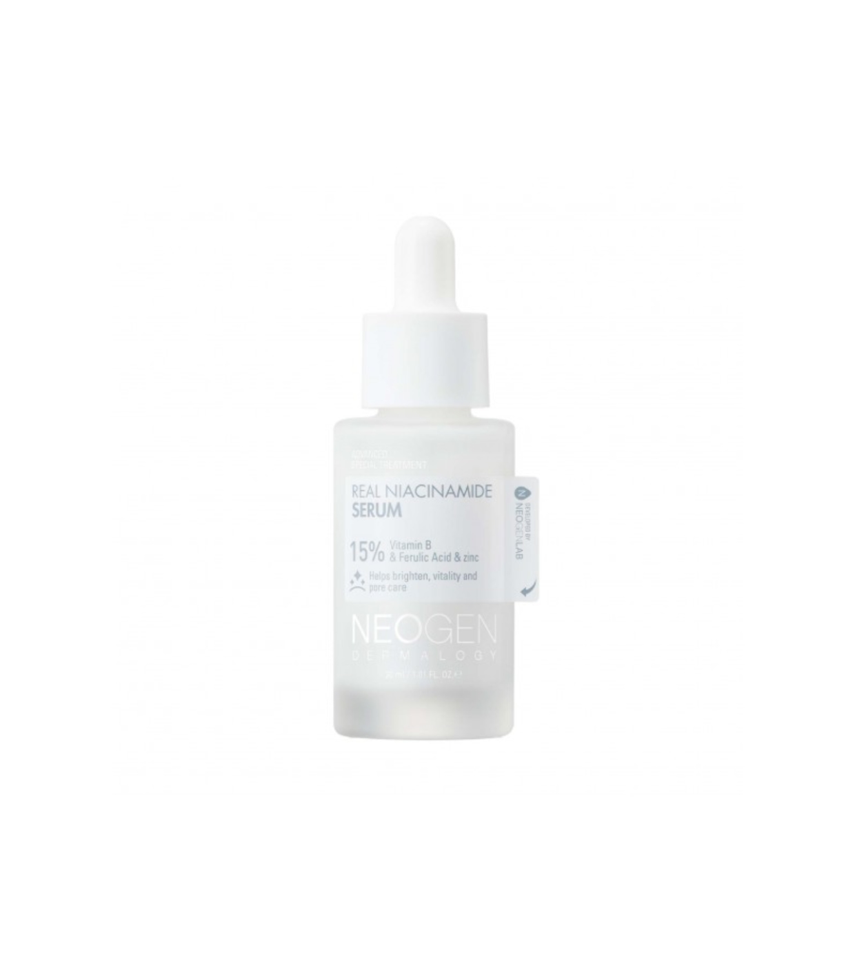 Dermalogy Real Niacinamide 15% Serum de Neogen est un sérum formulé pour aider à traiter l'hyperpigmentation, le teint irrégulier et les pores visibles, tout en hydratant et en apaisant la peau.