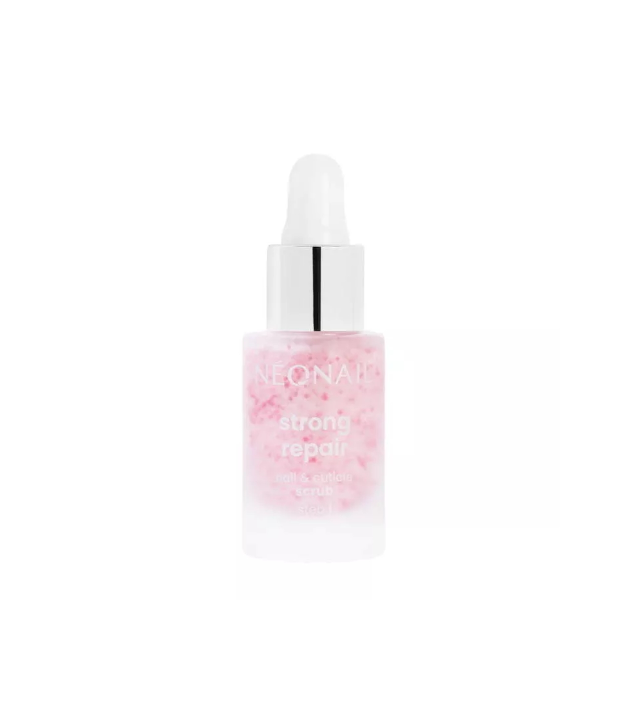 ÉTAPE 1 Nettoyage et exfoliation des cuticules et des ongles - Le gommage réparateur fort pour ongles et cuticules NEONAIL doit être appliqué sur l'ongle naturel propre et sec (sans vernis) ainsi que sur la zone des cuticules.