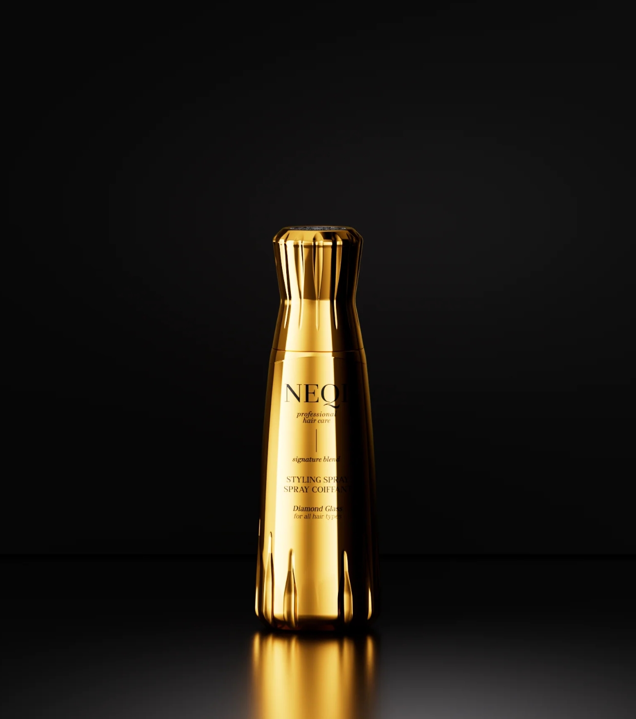Obtenez l'effet « cheveux de cristal » avec Diamond Glass Styling Spray Diamond Glass Styling Spray , un spray professionnel qui protège de l'humidité, offre une brillance miroir et garde votre coiffure sous contrôle.neqi-hair.com.