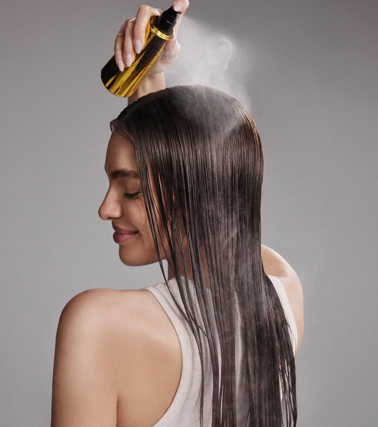 2. Vaporisez le spray généreusement et uniformément sur cheveux essorés (non mouillés).