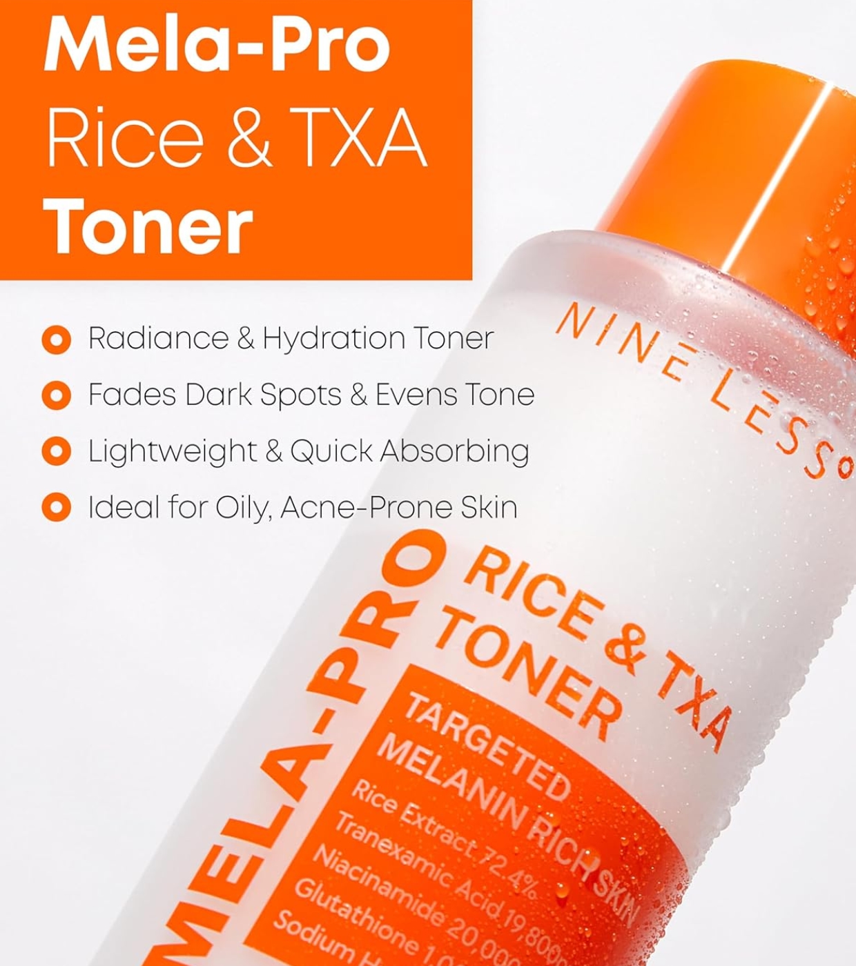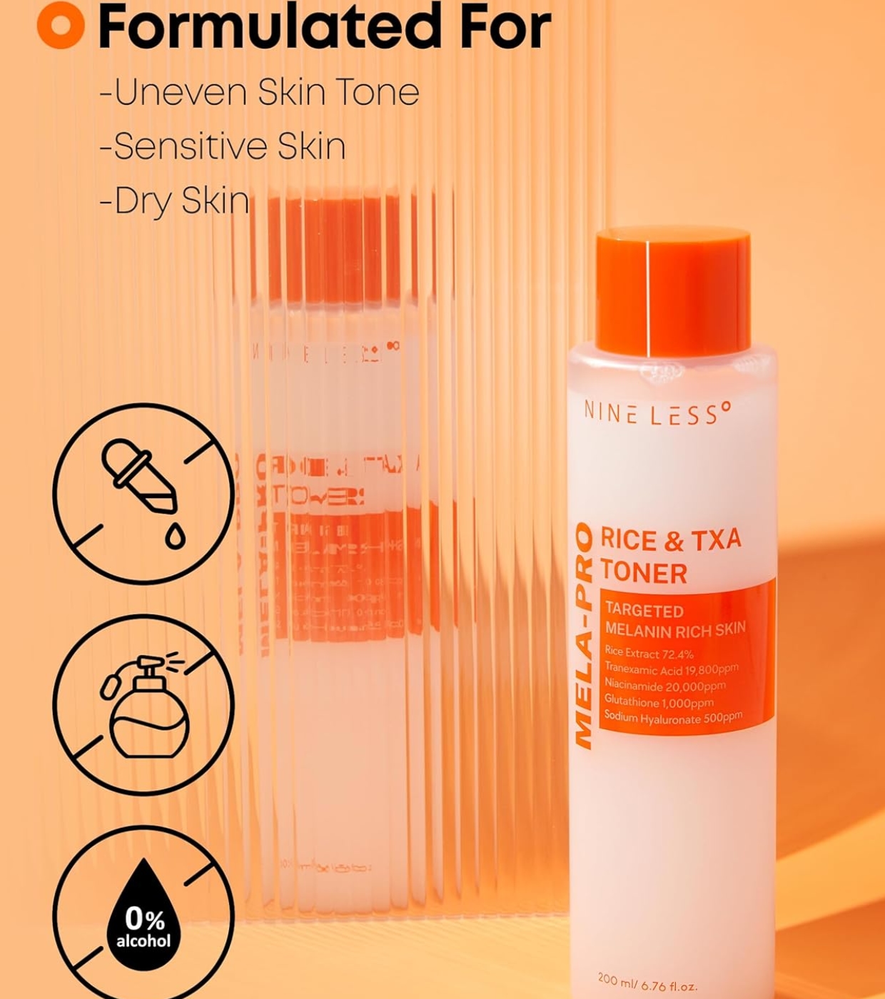 Le tonique facial au riz Nineless et Nineless est conçu pour traiter efficacement les taches brunes, l'hyperpigmentation et le teint irrégulier.