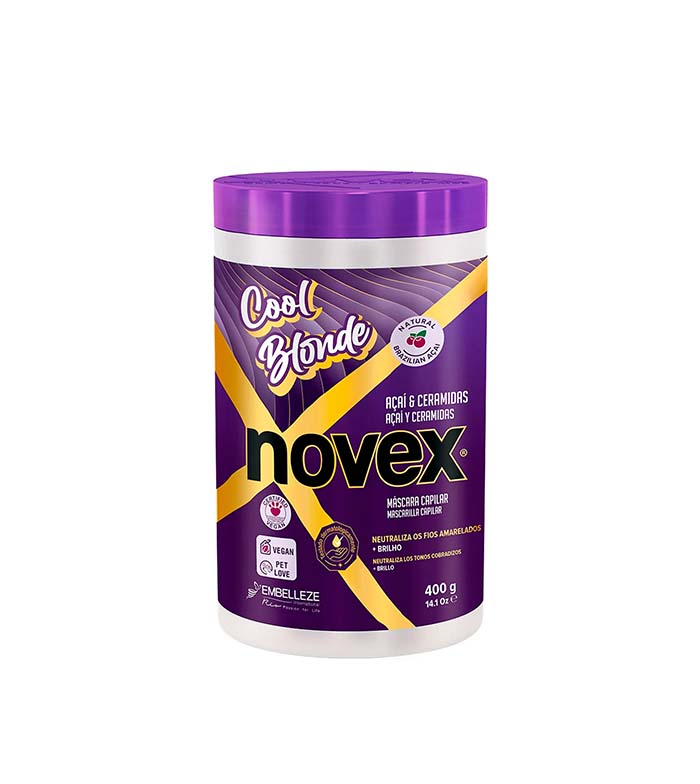 La ligne ` Novex Cool Blonde est la solution pour neutraliser les tons jaunâtres des cheveux blonds, argentés, blancs ou méchés.