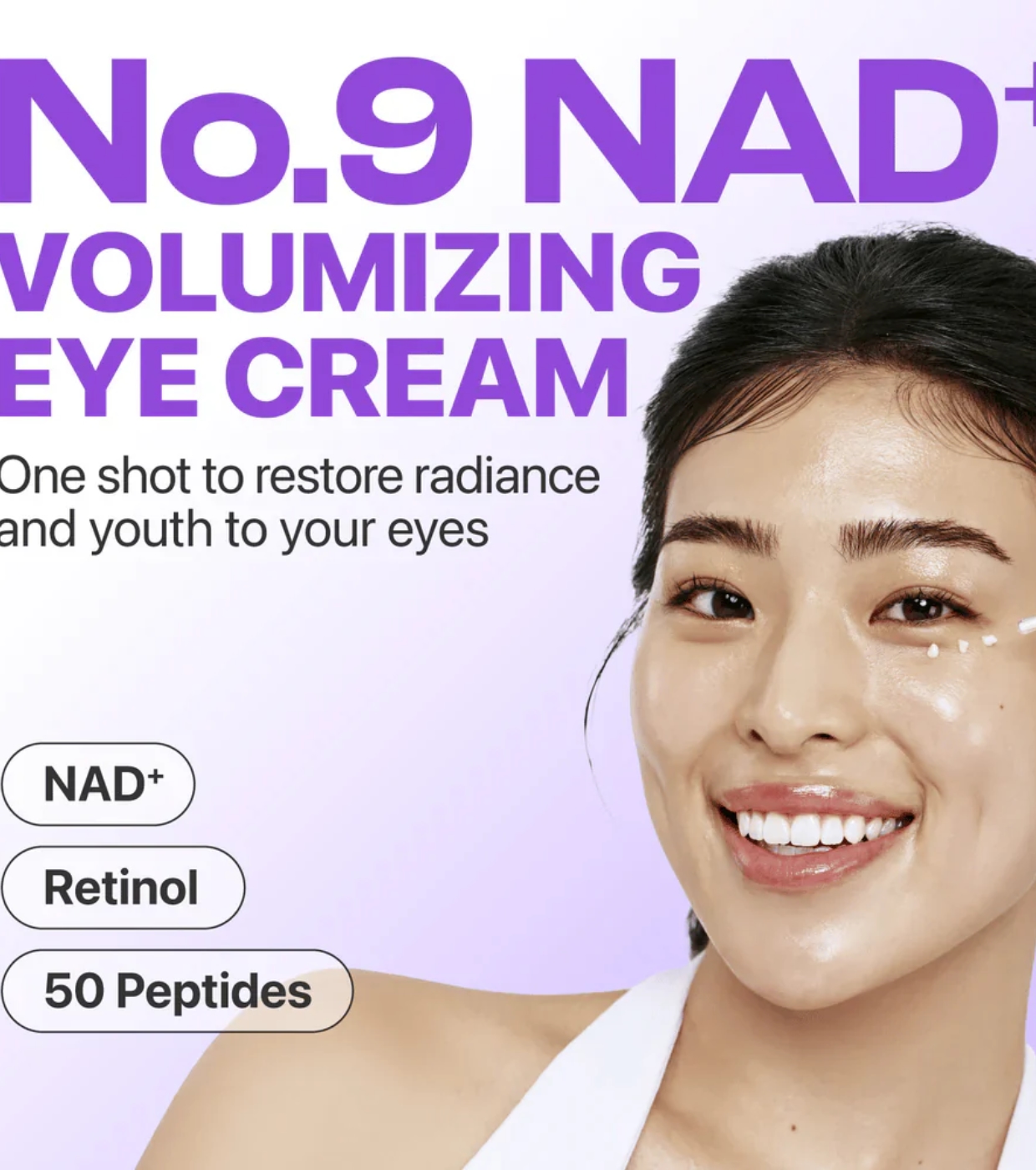 De plus, le NAD+ procure une hydratation intense, laissant le contour des yeux plus lisse, nourri et revitalisé.