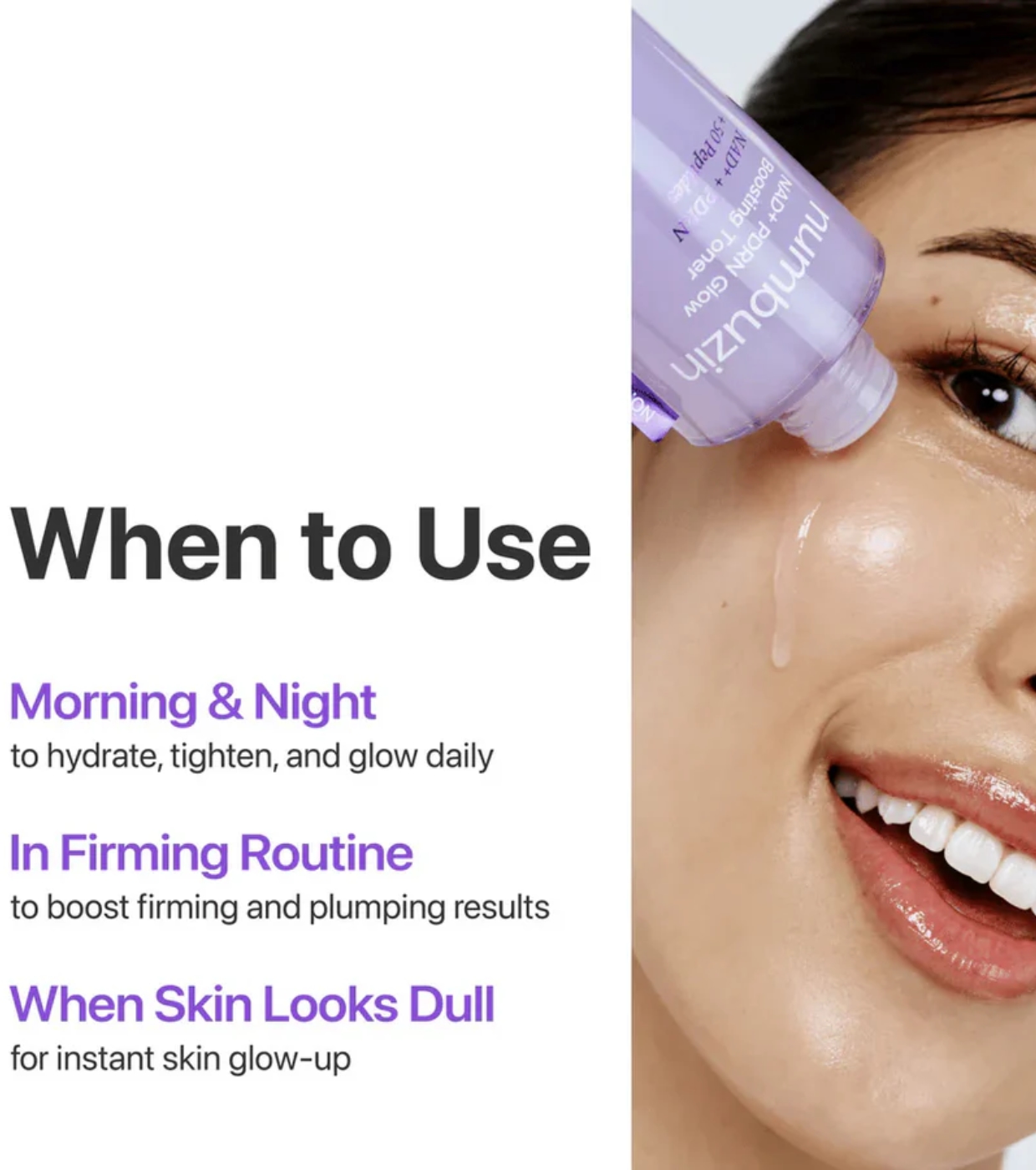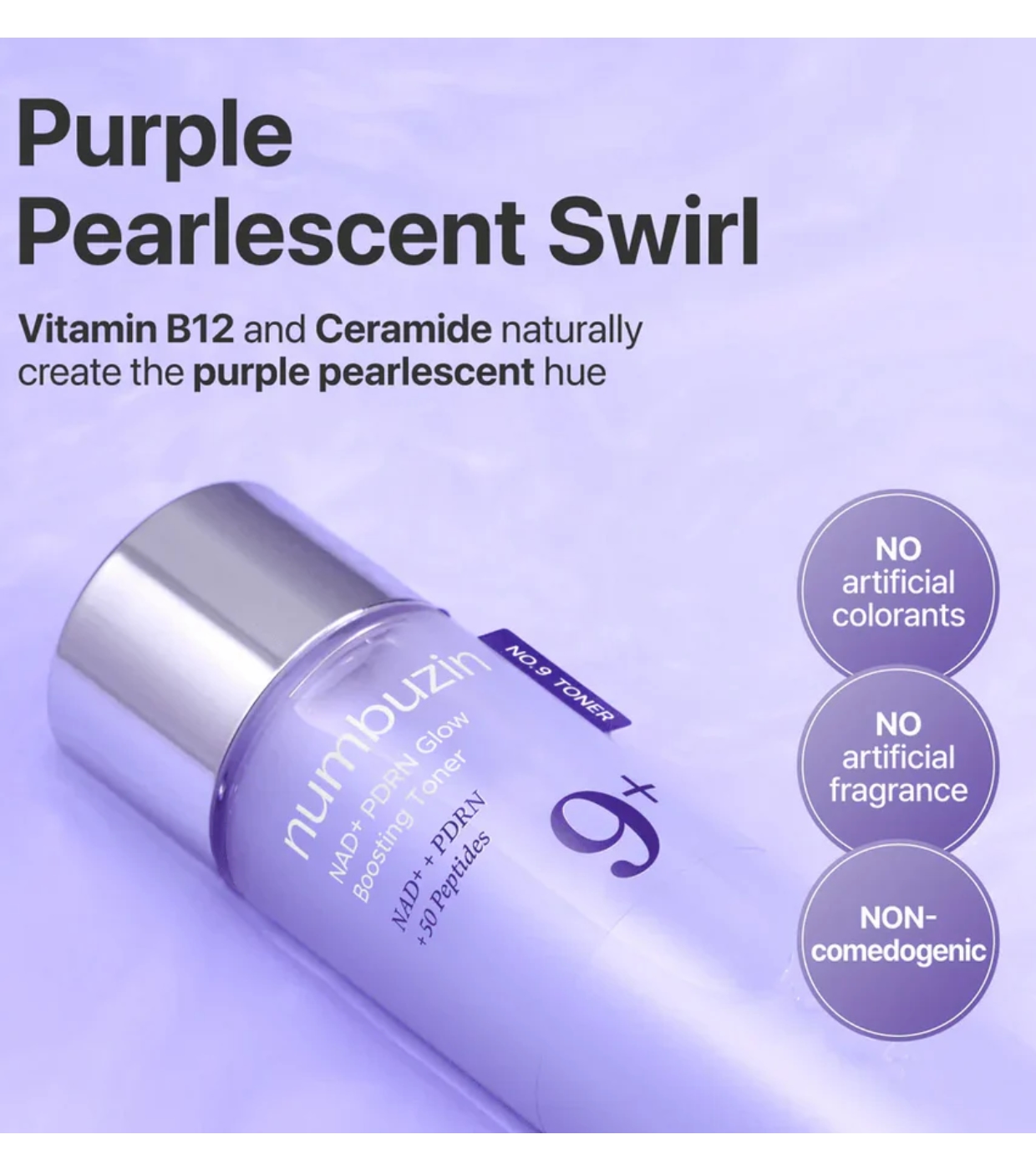 Cette lotion tonique éclaircissante de Numbuzin est formulée avec du NAD+, du PDRN de saumon et 50 types de peptides pour améliorer l'élasticité, renforcer la barrière cutanée et revitaliser la peau, révélant une luminosité éclatante de l'intérieur.