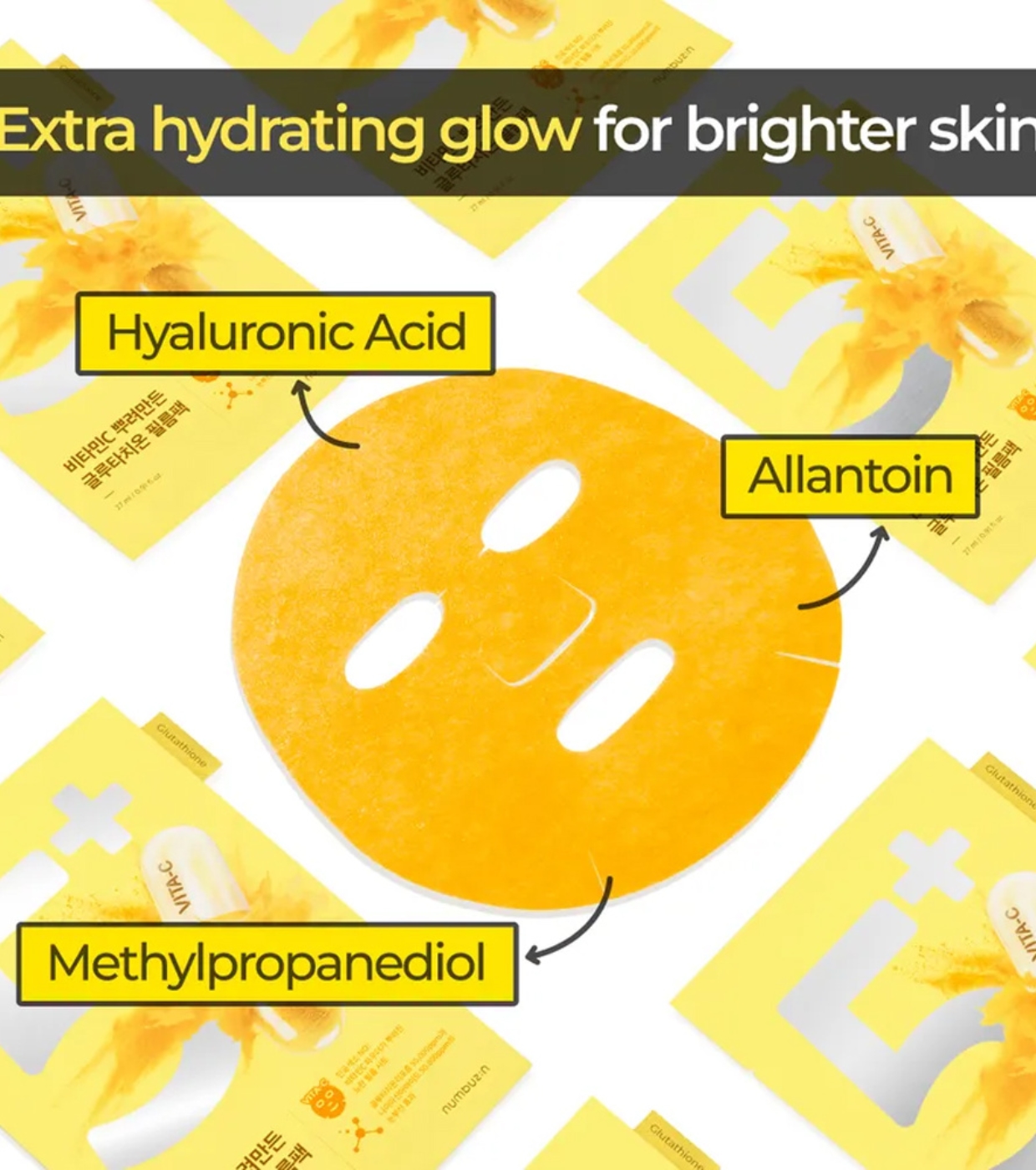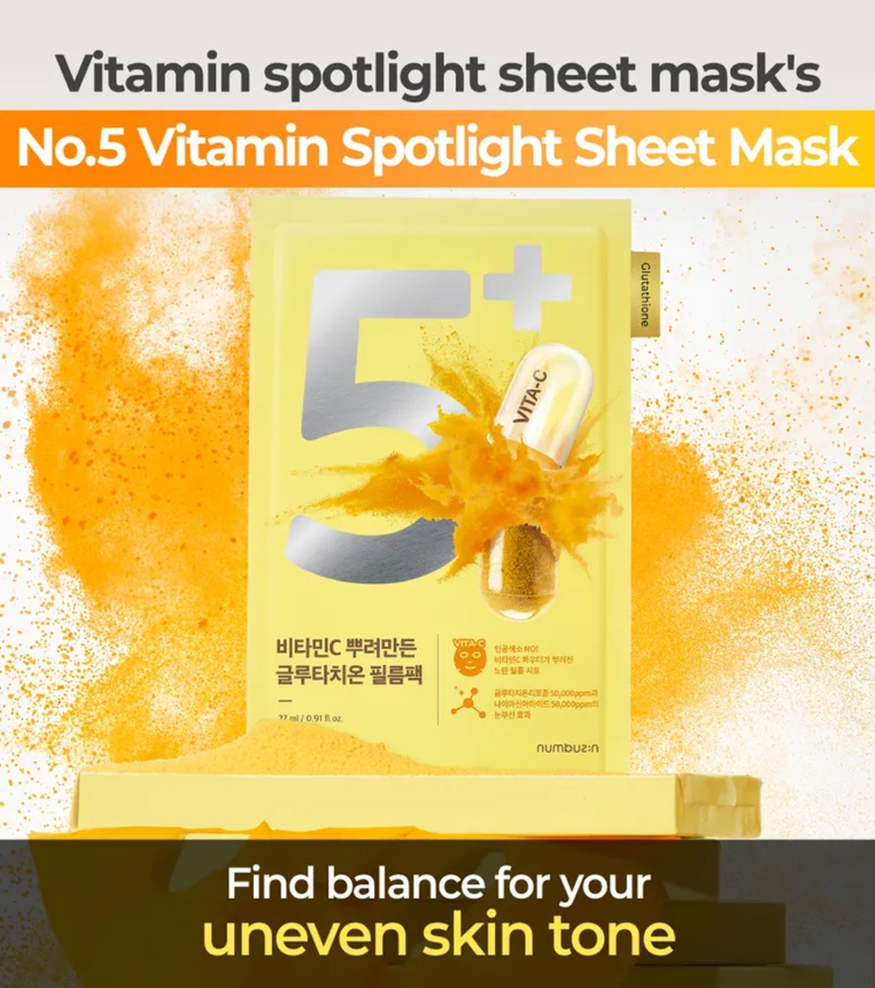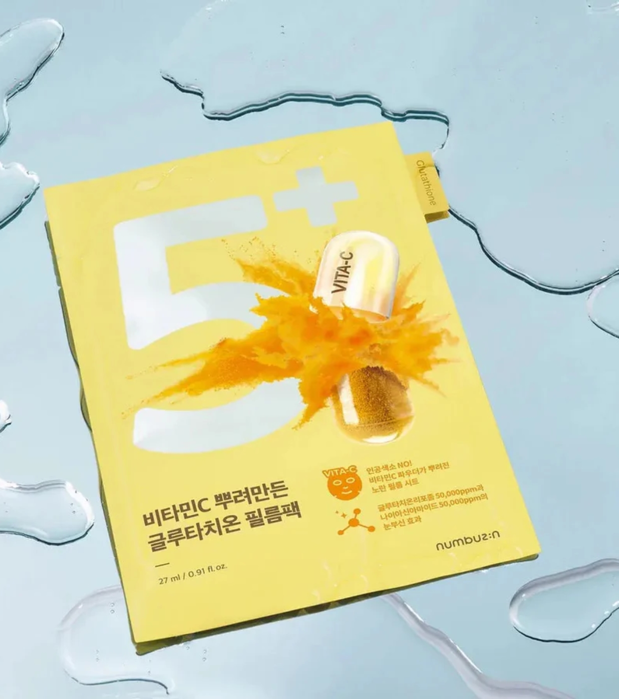 Redonnez de l'éclat à votre peau avec ce masque éclaircissant pour le visage No.5+ Glutathione Vitamin Concentrated de Numbuzin, de type ampoule, formulé avec du glutathion liposomal, de la niacinamide et de la vitamine C pour traiter le teint terne et les imperfections.