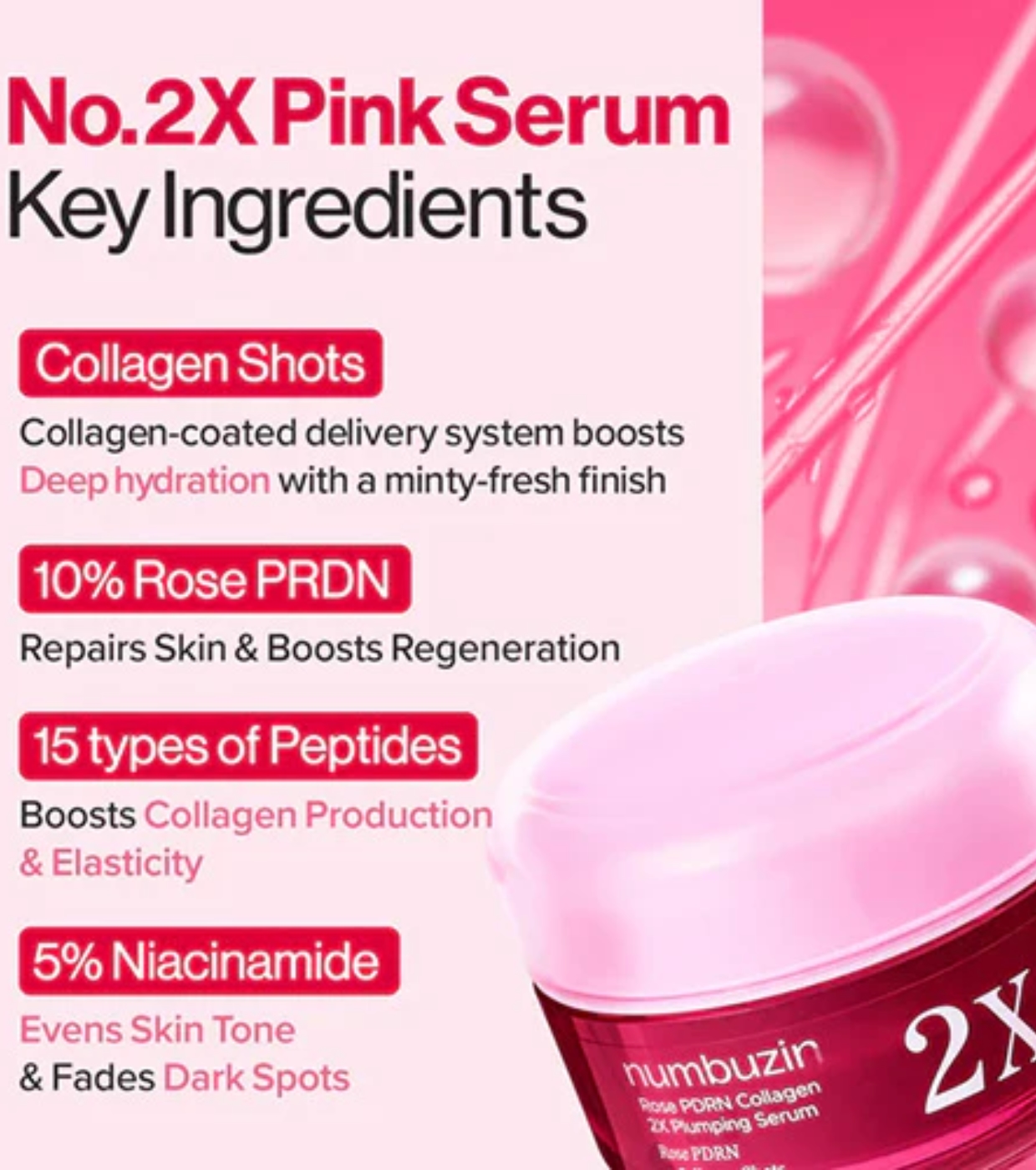 Vous recherchez une peau plus ferme, plus élastique et plus éclatante ? Ce sérum No.2 Rose PDRN Collagen 2X de Numbuzin, à la texture gelée onctueuse, est formulé pour offrir une hydratation intense et un effet revitalisant immédiat.