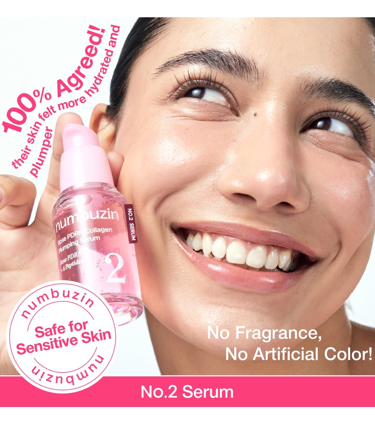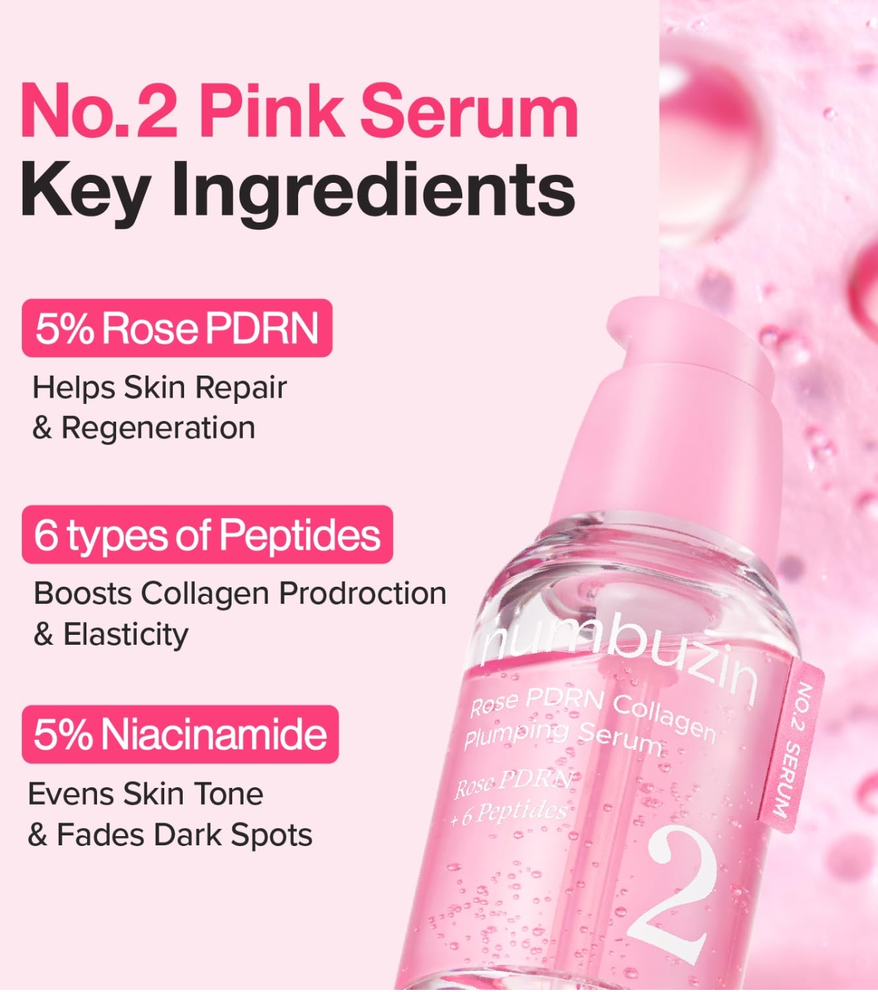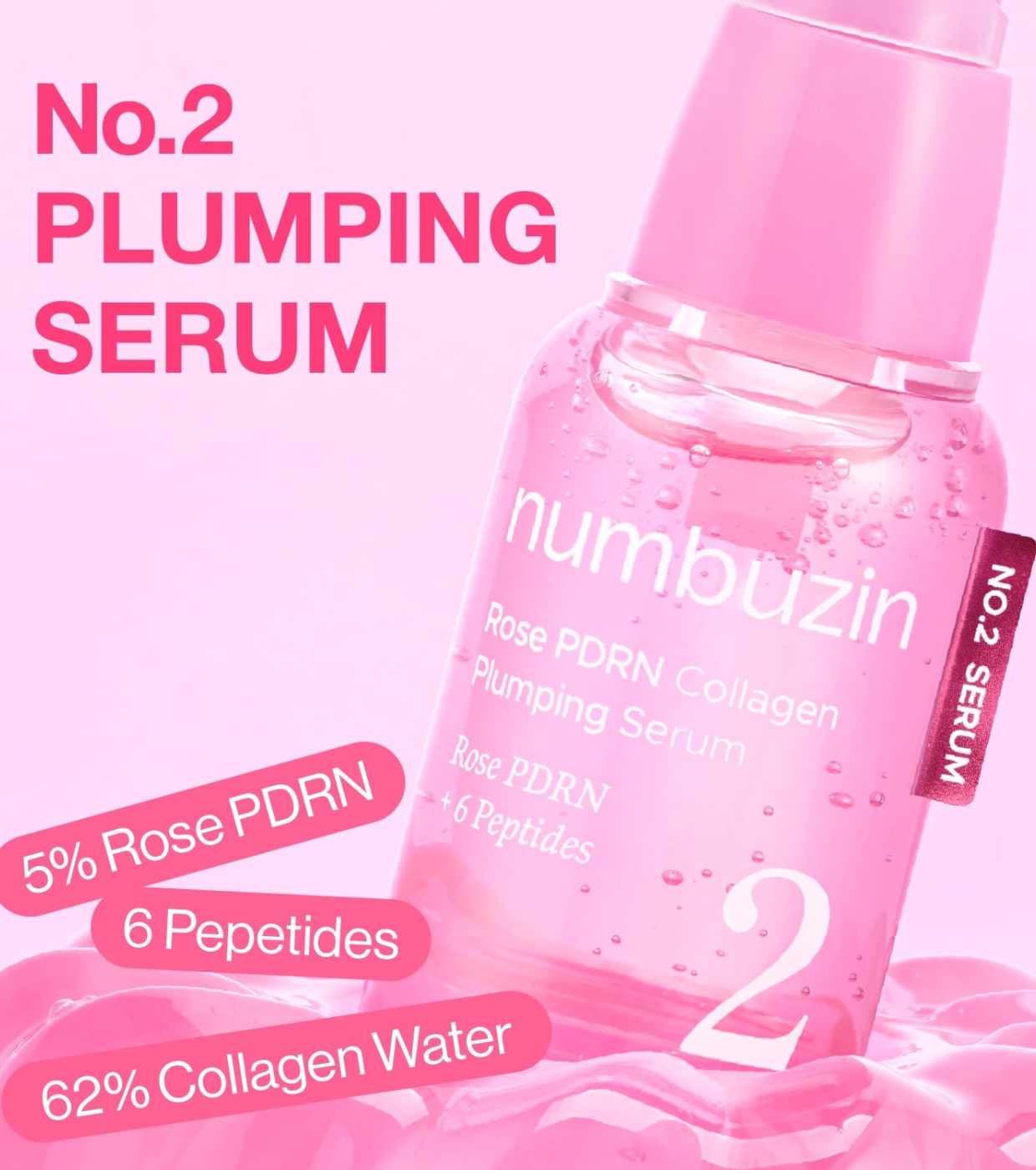 Obtenez la peau ferme, lisse et élastique dont vous avez toujours rêvé avec ce sérum No.2 Rose PDRN Collagen Plumping de Numbuzin , formulé avec des ingrédients de pointe pour réparer, repulper et revitaliser les peaux matures ou fatiguées.