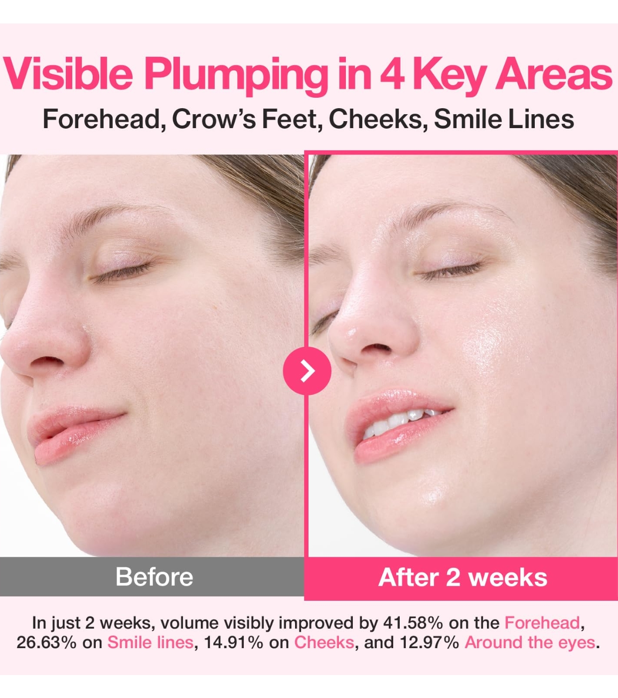 Collagen Water, Dipropylene Glycol, Glycereth-26, Water, Niacinamide, Glycerin, Butylene Glycol, Propanediol, 1,2-Hexanediol, Trehalose, PEG-240/HDI Copolymer Bis-Decyltetradeceth-20 Ether, Diethoxyethyl Succinate, Inositol, Polyacrylate Crosspolymer-6, Ethylhexylglycerin, Octyldodeceth-16, Sodium DNA, Rosa Damascena Flower Extract, Methyl Diisopropyl Propionamide, Adenosine, Polyglyceryl-10 Oleate, Octyldodecanol, Sodium Hyaluronate Crosspolymer, Hydrogenated Lecithin, Hydrolyzed Glycosaminoglycans, Cyanocobalamin, Polysorbate 20, Sodium Hyaluronate, Disodium EDTA, Lecithin, Potassium Laurate, Tocopherol, Benzyl Glycol, Caprylyl Glycol, Resveratrol, Hydrolyzed Hyaluronic Acid, Hyaluronic Acid, Polylactic Acid, Acetyl Hexapeptide-1, Silica, Sodium Ascorbyl Phosphate, Tripeptide-1, Tripeptide-2, Acetyl Hexapeptide-8, Acetyl Octapeptide-3, Palmitoyl Pentapeptide-4, Palmitoyl Tetrapeptide-7, Raspberry Ketone, sh-Oligopeptide-1, sh-Polypeptide-1, sh-Polypeptide-11, sh-Polypeptide-22
