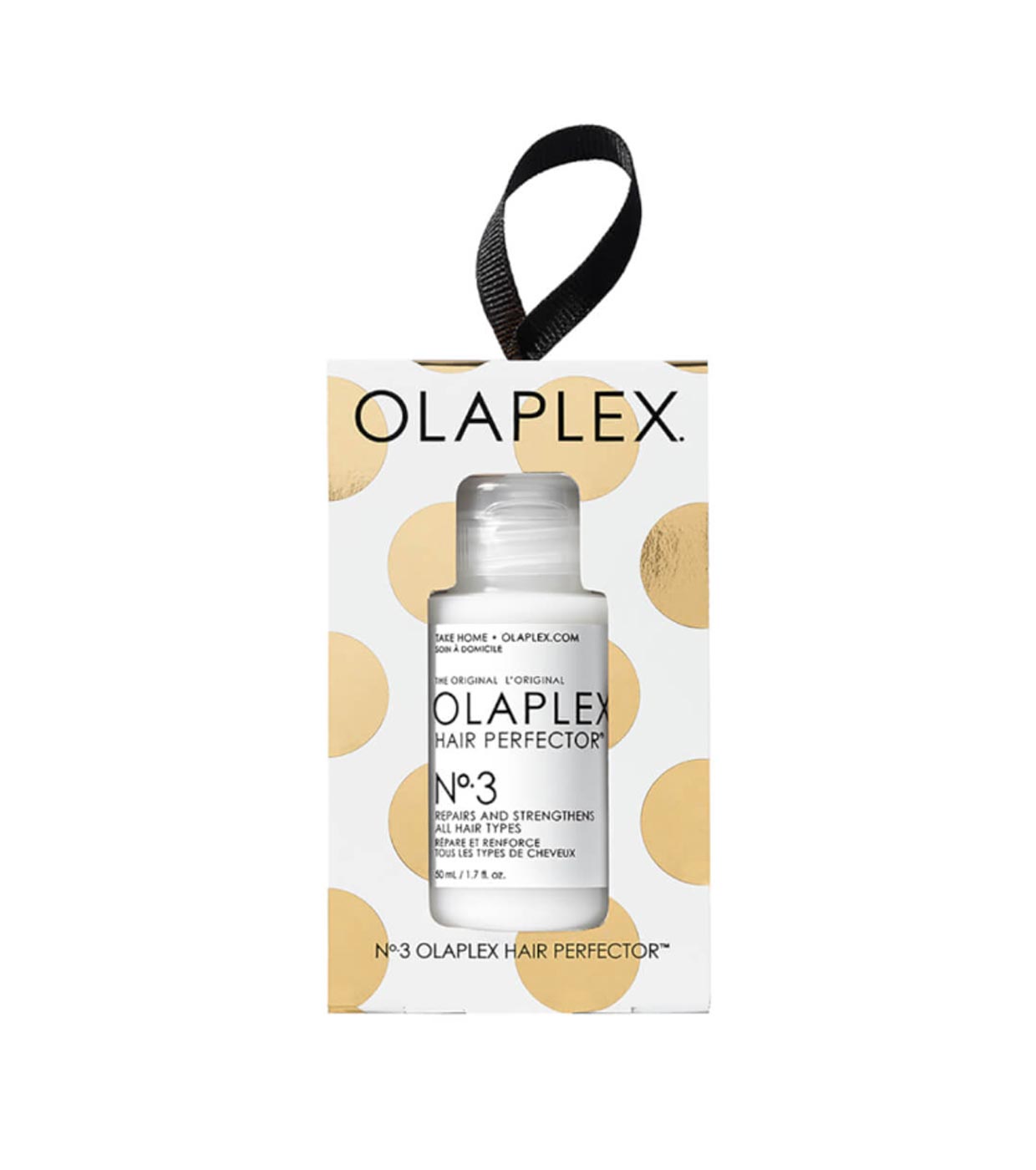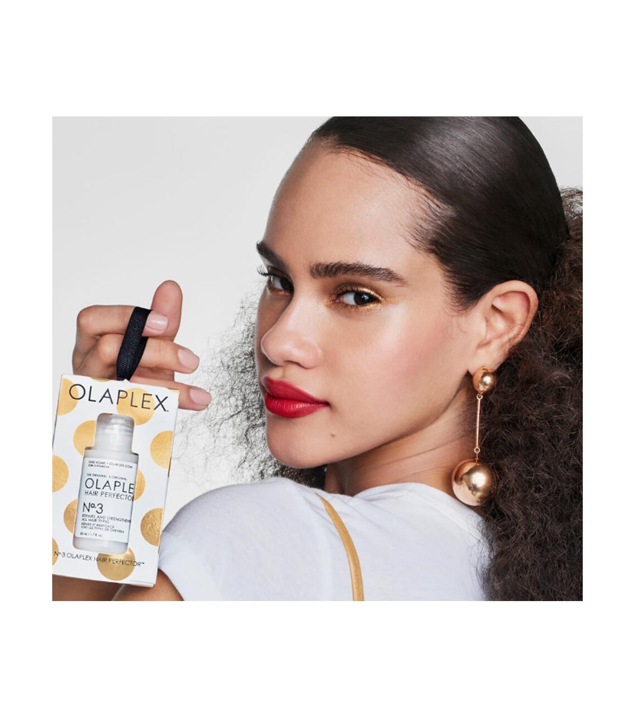 Le traitement capillaire à tenue emblématique, OLAPLEX No.3 Hair Perfector™, est présenté dans un emballage ornemental doré pour une durée limitée.
