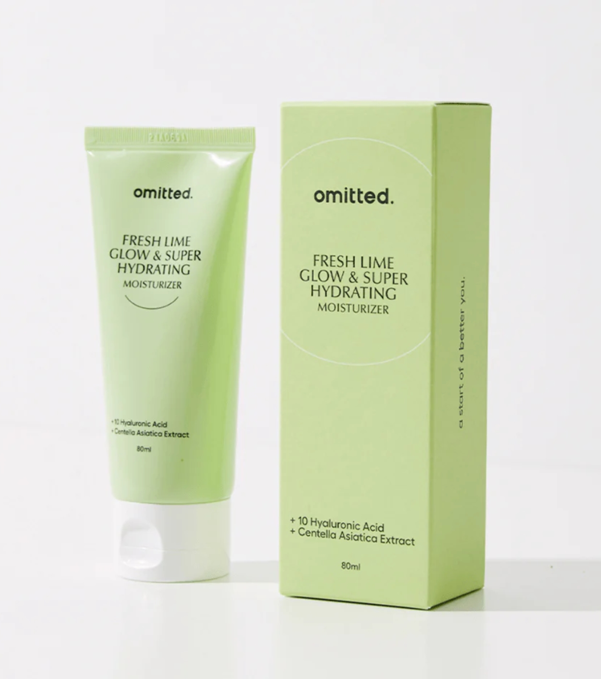 Fresh Lime Glow & Super Hydrating Moisturizer de Omitted est une crème hydratante pour le visage tout-en-un qui hydrate intensément, apaise et améliore visiblement la texture de la peau.