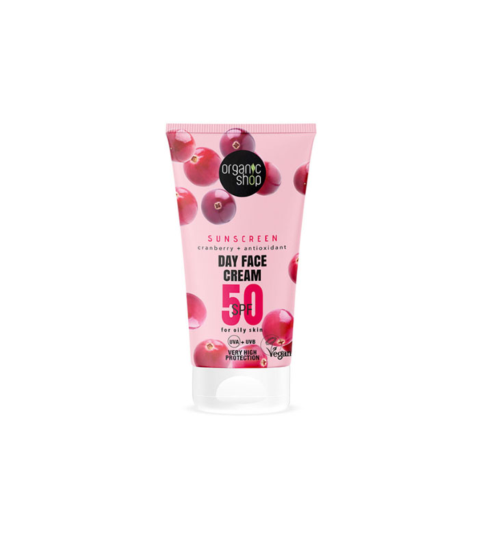 Découvrez la crème solaire pour le visage Canneberges + Antioxydant SPF 50 de Organic Shop.