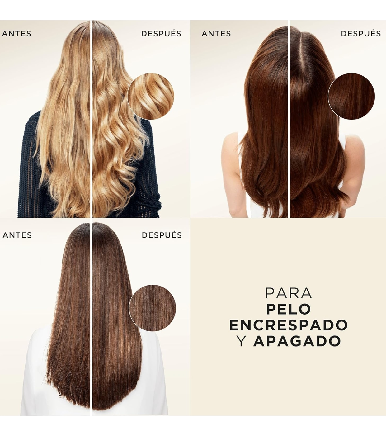 Il convient à tous les types de cheveux, mais est particulièrement recommandé à ceux qui souffrent de frisottis et d’indiscipline.