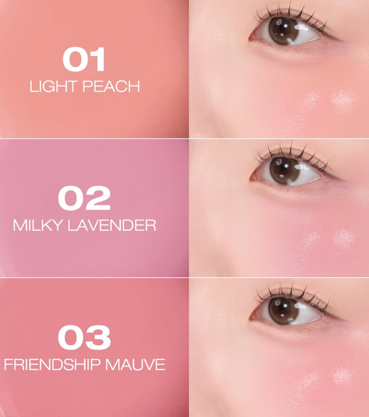 Sa formule sirupeuse adhère parfaitement à la peau, offrant un fini uniforme et transparent qui sublime les joues sans déplacer la base de maquillage.