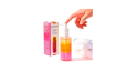 Nutrition et hydratation avec une formule puissante qui contient de l'extrait de framboise et de l'hyaluronate de sodium (bloc rose).