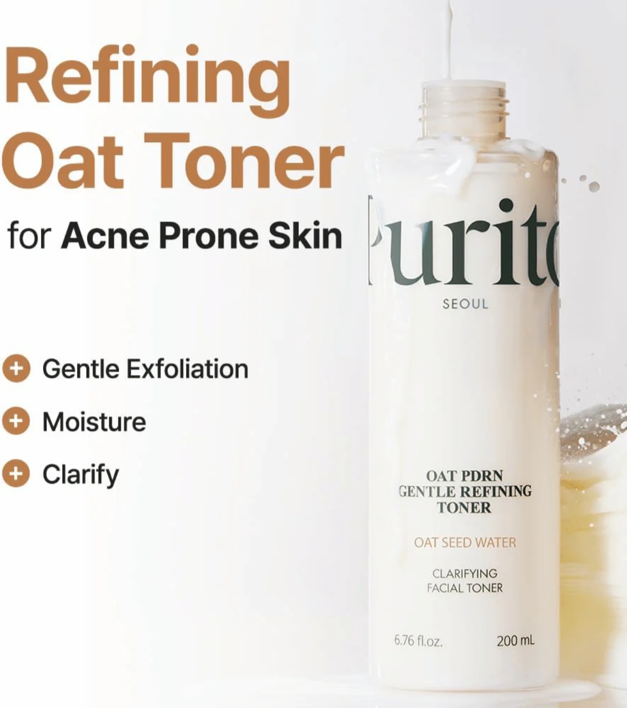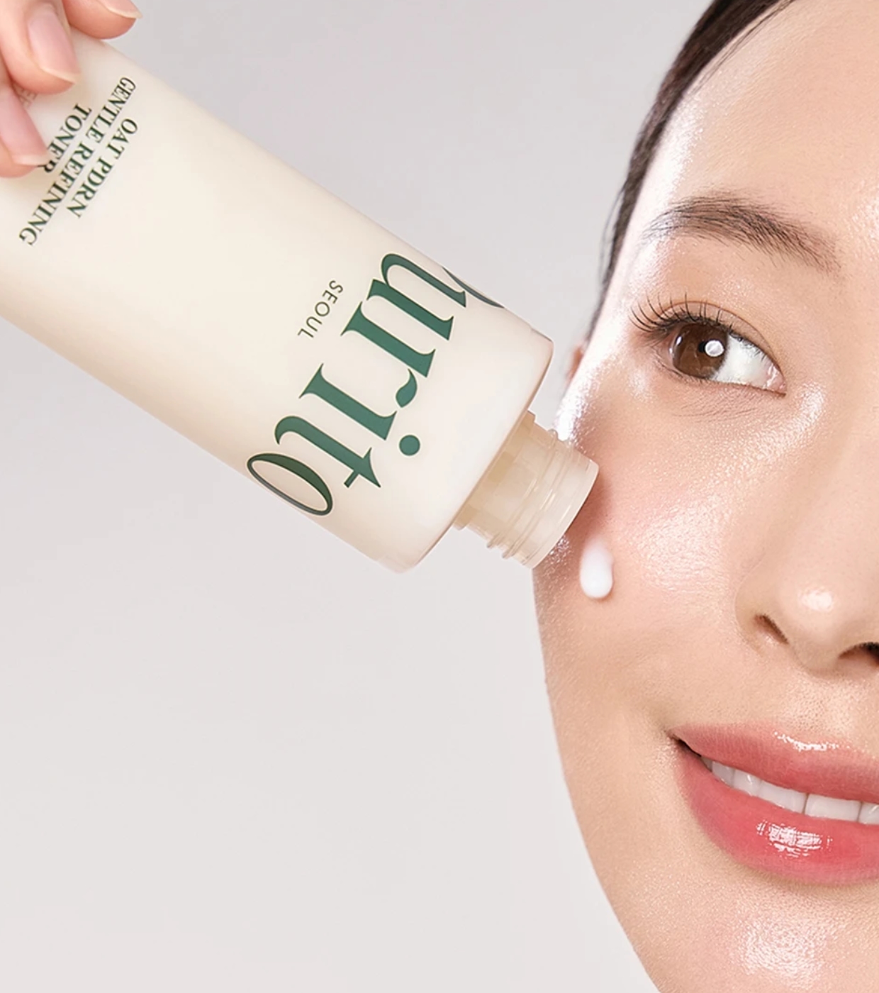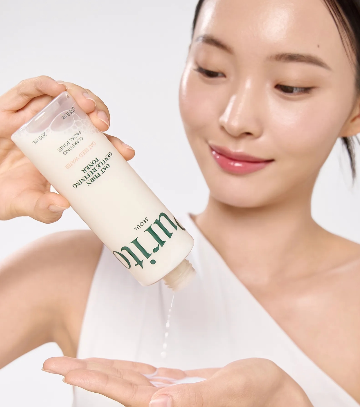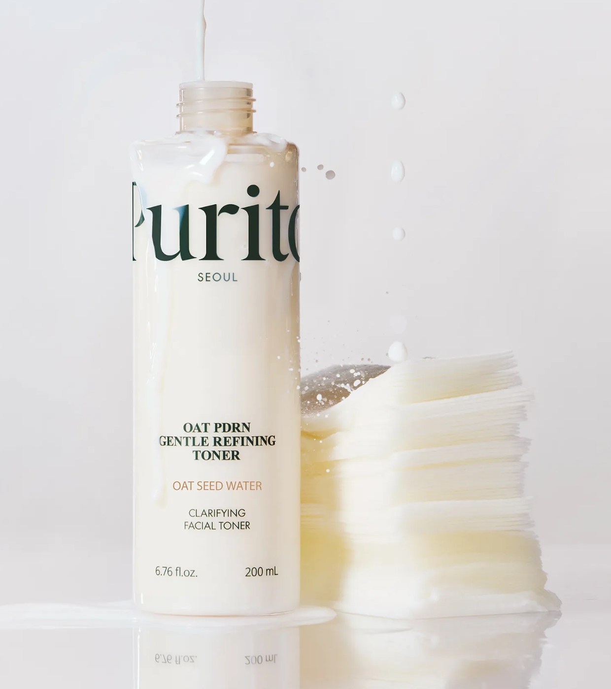La lotion tonique pour le visage Oat PDRN Gentle de Purito a une texture « laiteuse » et est conçue pour adoucir la peau, améliorer sa texture et l'apaiser sans recourir à des exfoliants agressifs.